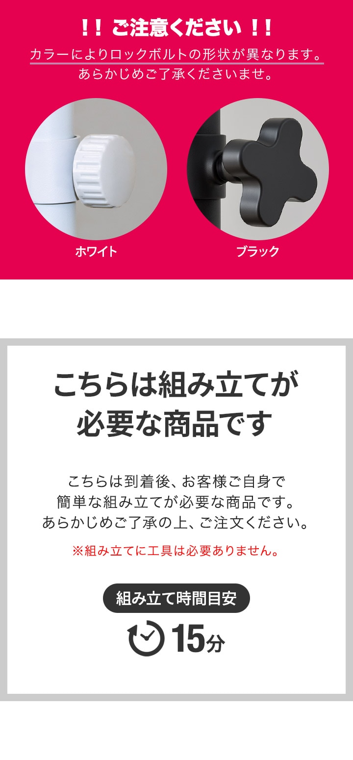 | 特記事項: こちらはお客様による組み立てが必要な商品です。※工具は必要ありません。 カラーによりロックボルトの形状が異なります。 |
