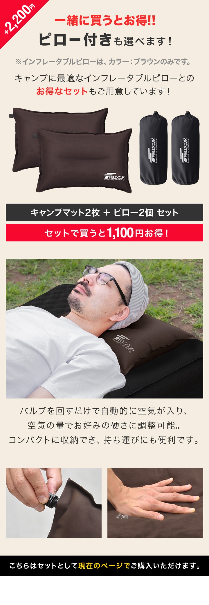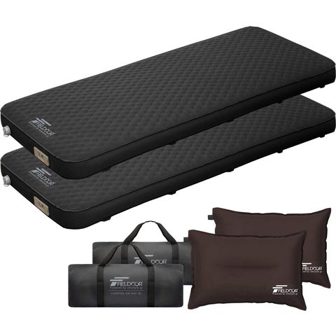 FIELDOOR キャンプ マット (シングル幅75cm/お買得2個セット/マット&ピロー付きセット) 極厚 厚さ10cm インフレーターマット エアーマット 電動ポンプ付き 断熱 車中泊 テント アウトドア用寝具 コンパクト収納 自動膨張 エアーベッド 吸引 連結 厚手 防災 送料無料