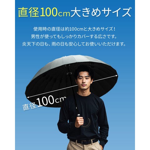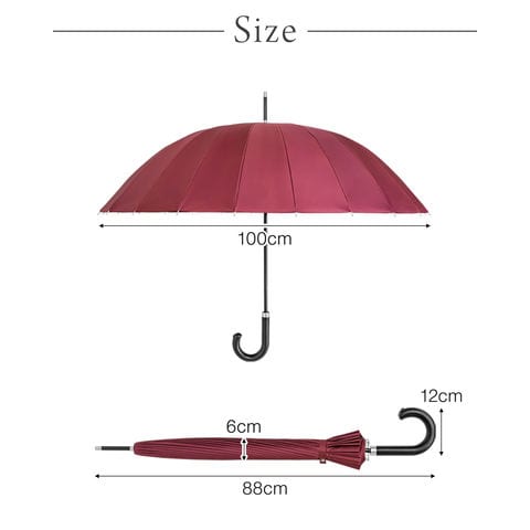| サイズ: 親骨 : (約)60cm 収納時 : (約)直径6cm×長さ88cm 使用時 : (約)直径100cm |