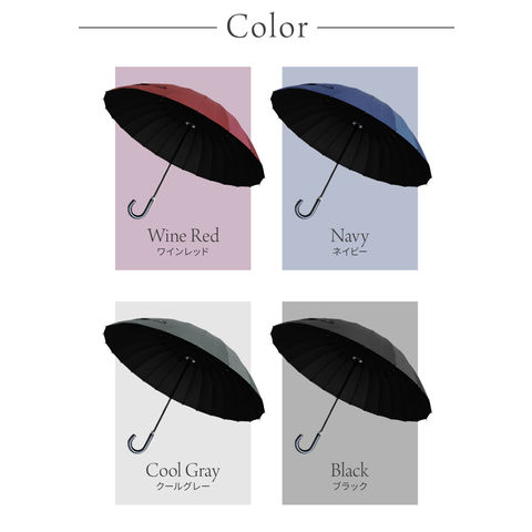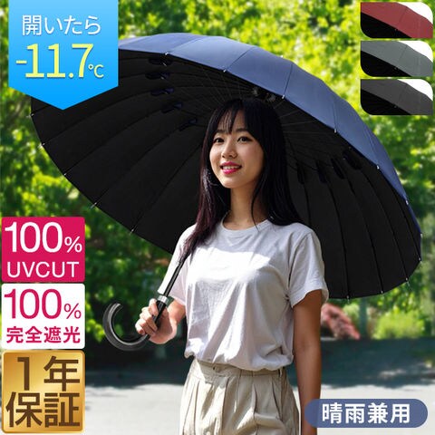 傘 レディース傘 メンズ傘 24本骨傘 軽量 グラスファイバー (クールグレー/完全遮光/晴雨兼用タイプ) 親骨61cm 直径100cm 大きい ユニセックス 大型 長傘 超撥水 UVカット 丈夫 シンプル 無地 おしゃれ 男女兼用 日傘 ビジネス 熱中症対策 送料無料