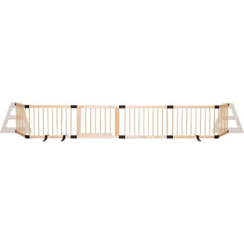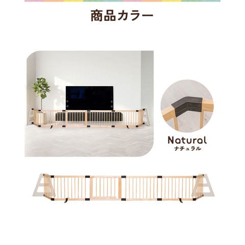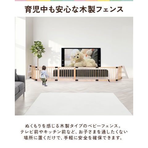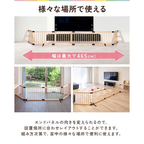 RiZKiZ ベビーフェンス (幅465cm/ドア&エンドパネル付き/補助スタンド2+1本セット) 高さ55cm 木製 置くだけ 自立式 補助スタンド付き 天然木 簡単設置 組み立て式 テレビガード 階段 台所 キッチン リビング パーテーション ベビーサークル 柵 安全 倒れにくい 送料無料