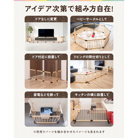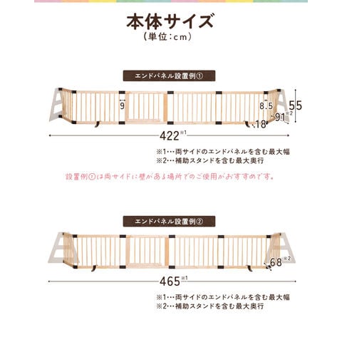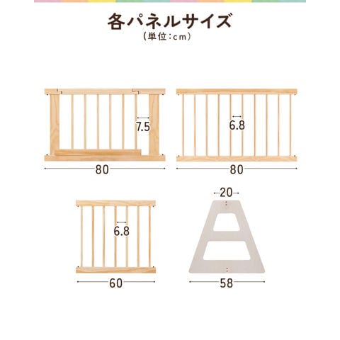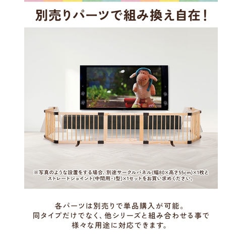 | 材質: ・サークルパネル…パイン材(松の木) ・ジョイントパーツ…PP樹脂 ・エンドパネル…プライウッド ・補助スタンド…スチール |