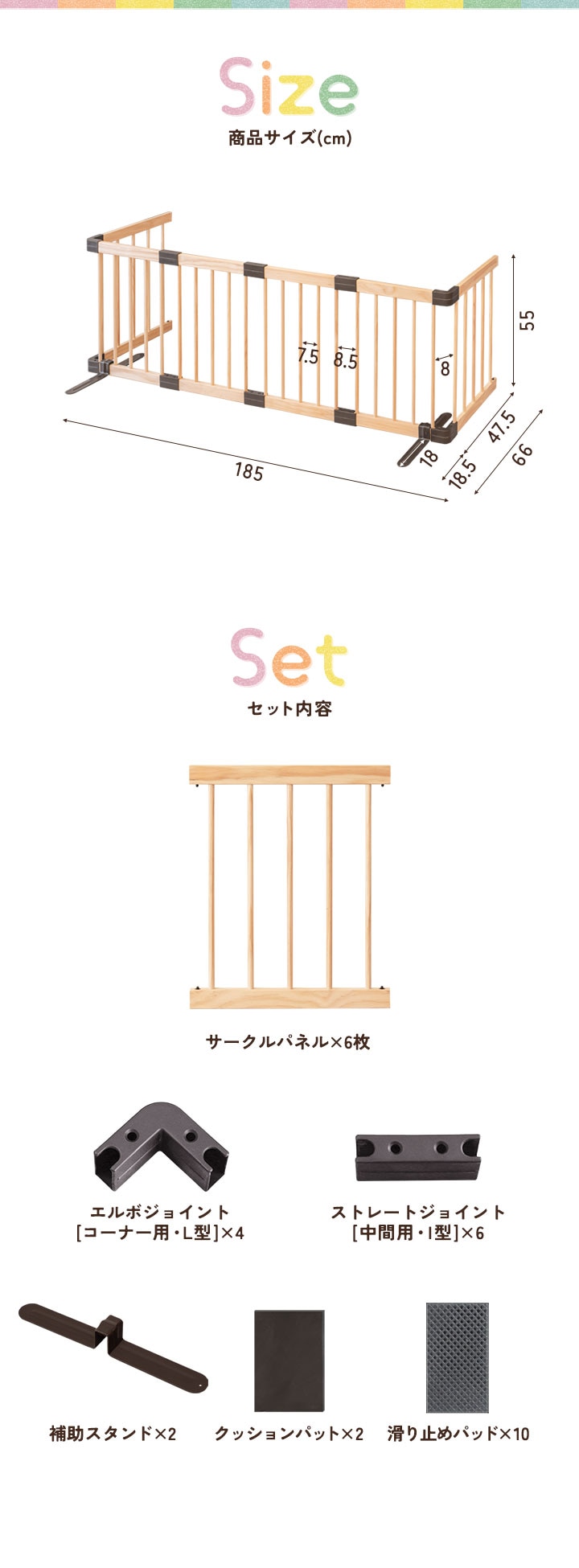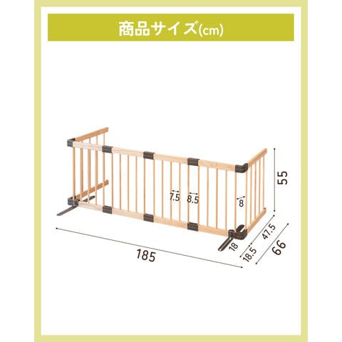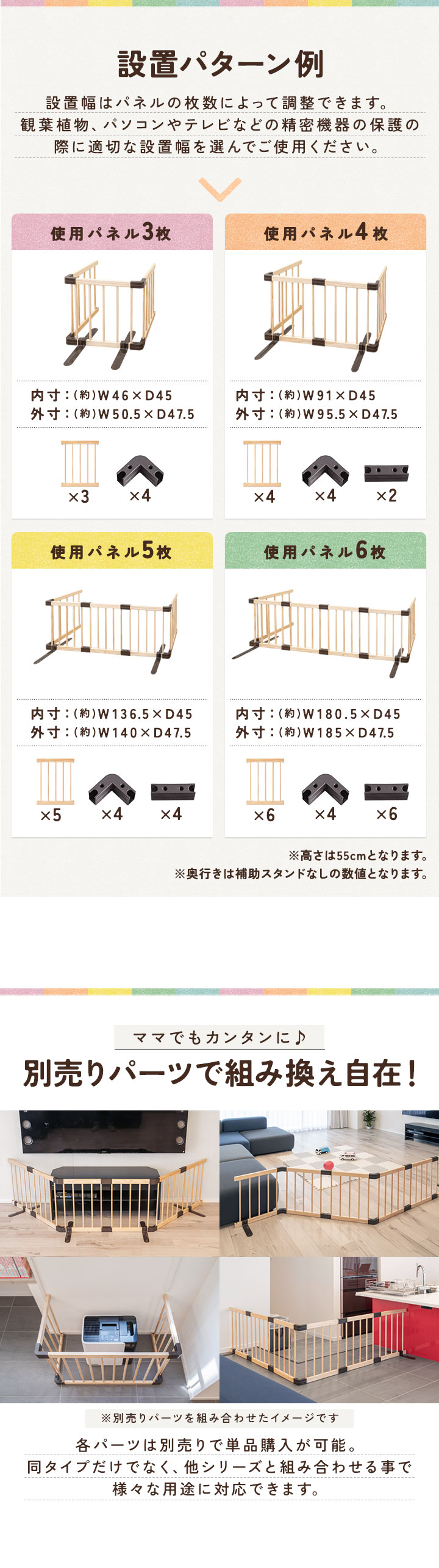 RiZKiZ ベビーフェンス (幅185cm/ドアなし/補助スタンド2+2本セット) 高さ55cm 木製 置くだけ 幅約45cm 自立式 補助スタンド付き 天然木 簡単設置 組み立て式 テレビガード 階段 台所 キッチン リビング パーテーション ベビーサークル 柵 安全 倒れにくい 送料無料のレビュー