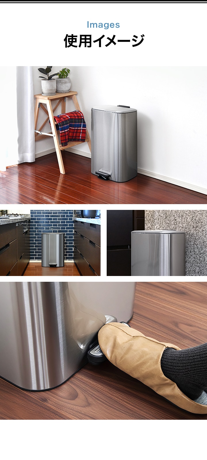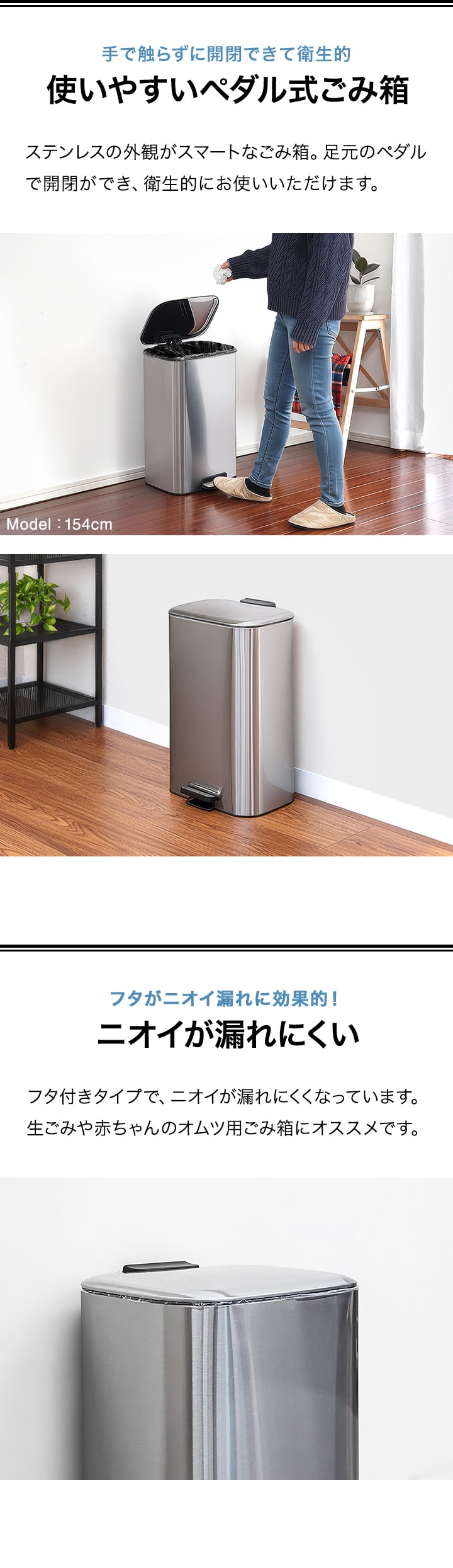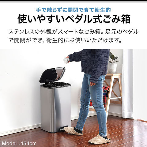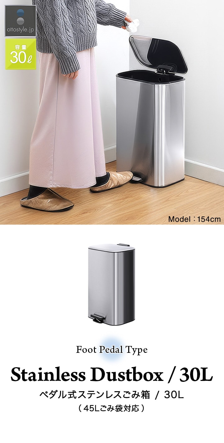ゴミ箱 30L ペダル ふた付き ペダル開閉式 縦型 ステンレス/スチール ゆっくり静かにフタが閉まる ゴミ袋が見えない 30リットル ダストボックス ペール 蓋つき ごみ箱 臭い漏れ防止 リビング キッチン ペダル式 足踏み 送料無料