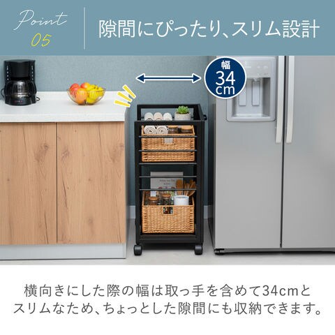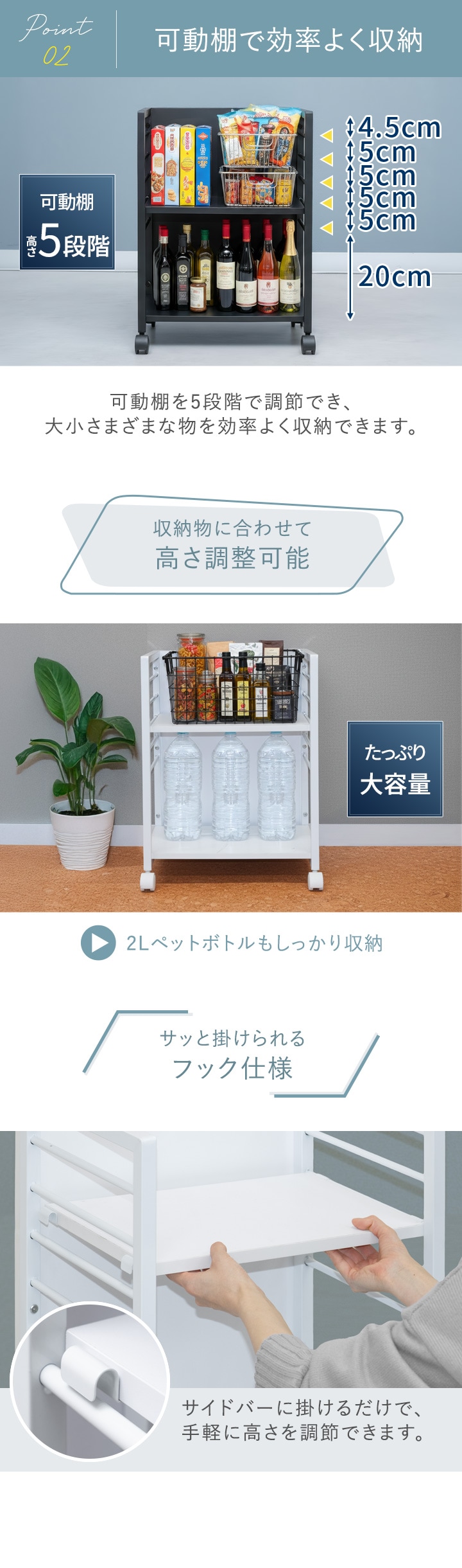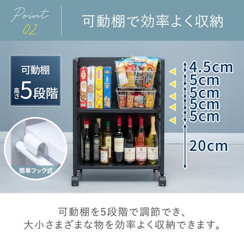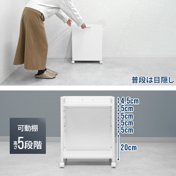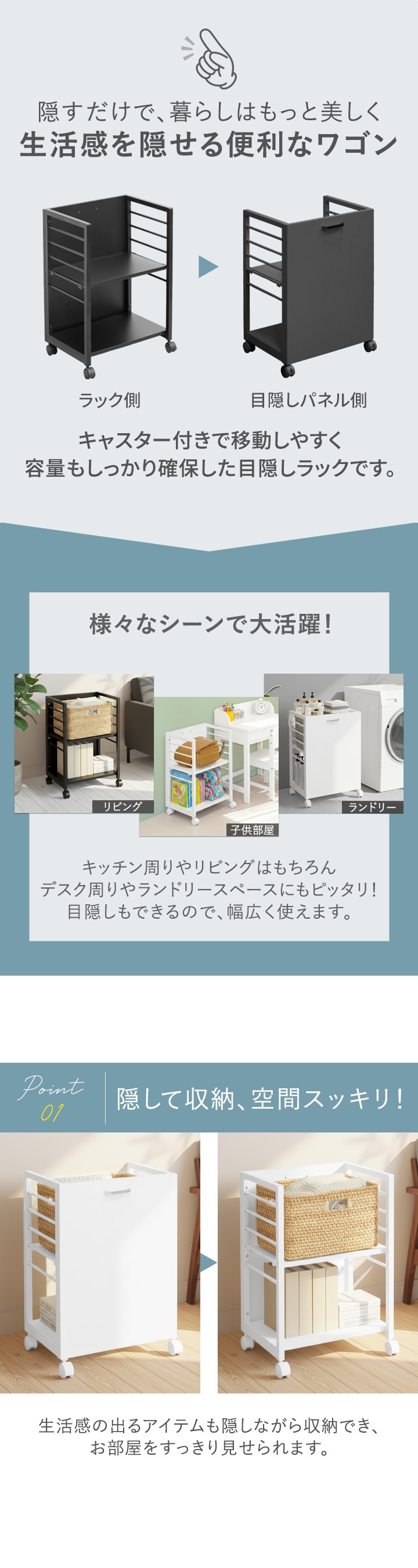 キッチンワゴン キャスター付き (ホワイト) 目隠しワゴン 高さ60cm スリム 幅45cm×34cm キッチン収納 キッチンラック 隙間収納ワゴン 可動棚 目隠し 見せない スチール 耐荷重50kg デスクワゴン サイドワゴン おしゃれ 北欧 送料無料