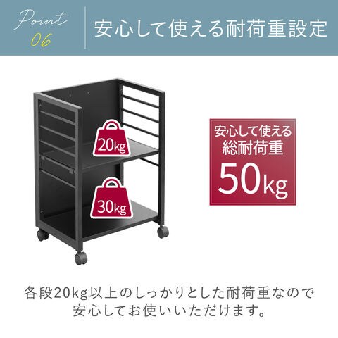 | 耐荷重: 可動棚:20kg 最下段:30kg 全体:50kg |