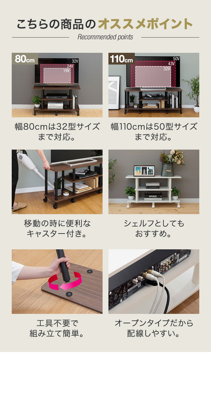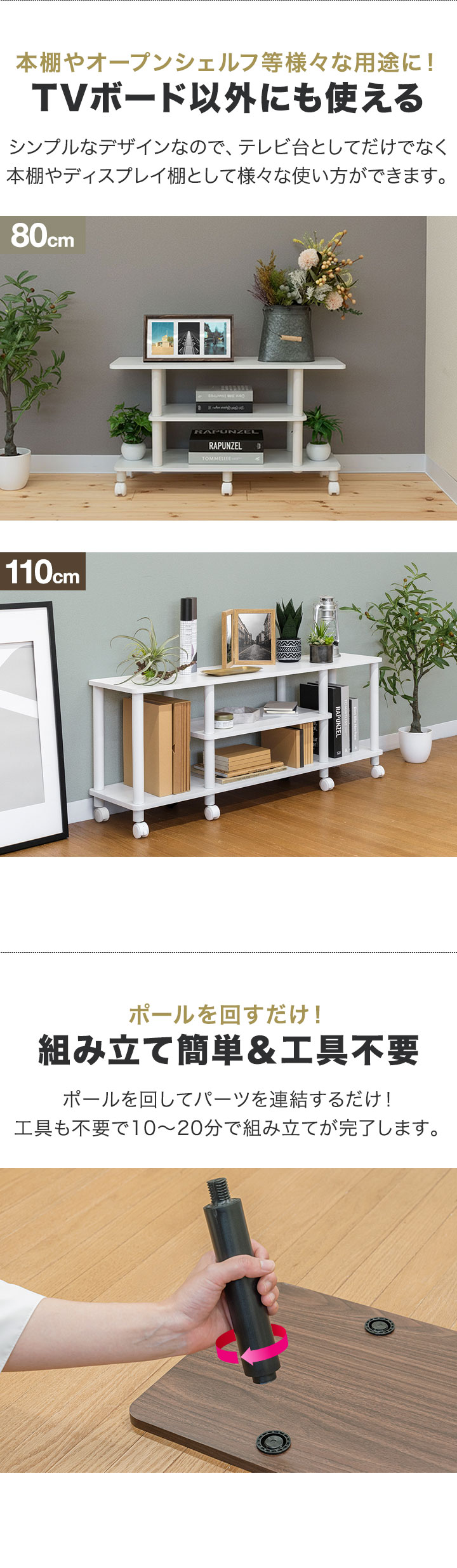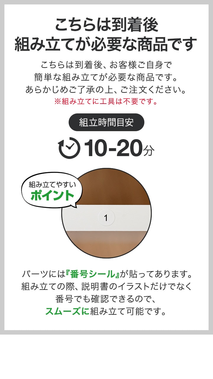 | 組み立て時間(目安): 【幅80cmタイプ】 10分 【幅110cmタイプ】 20分 |