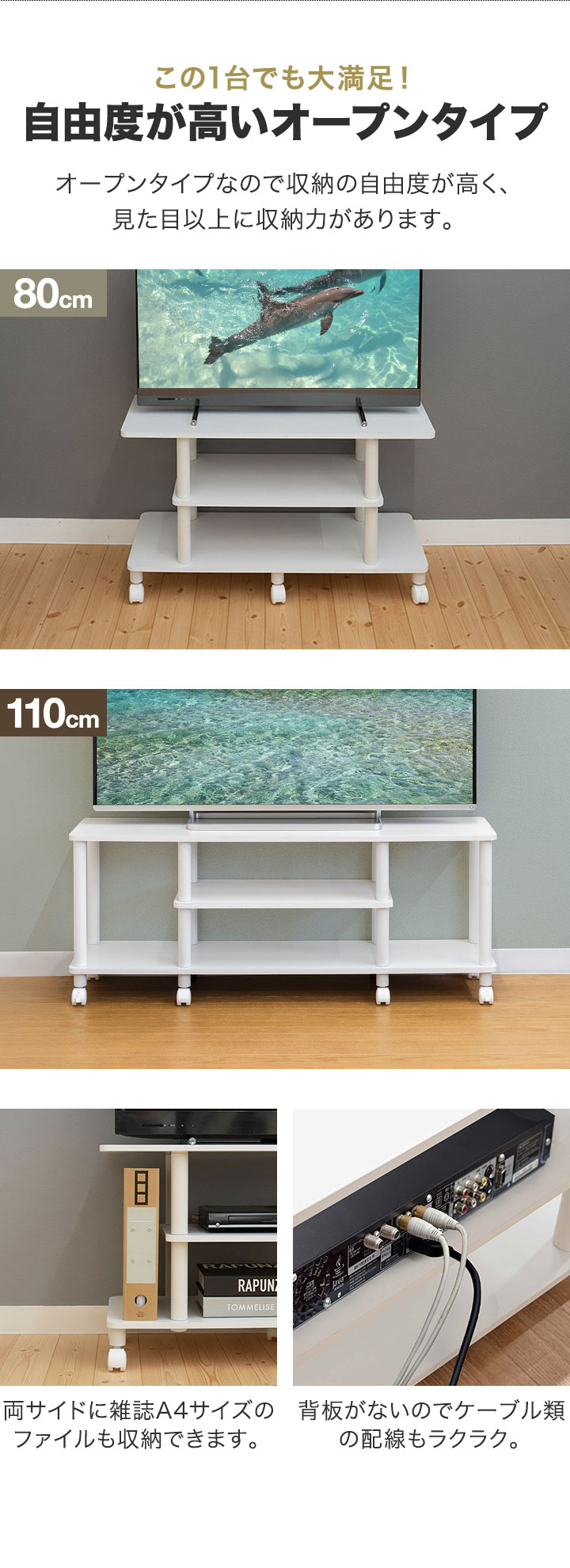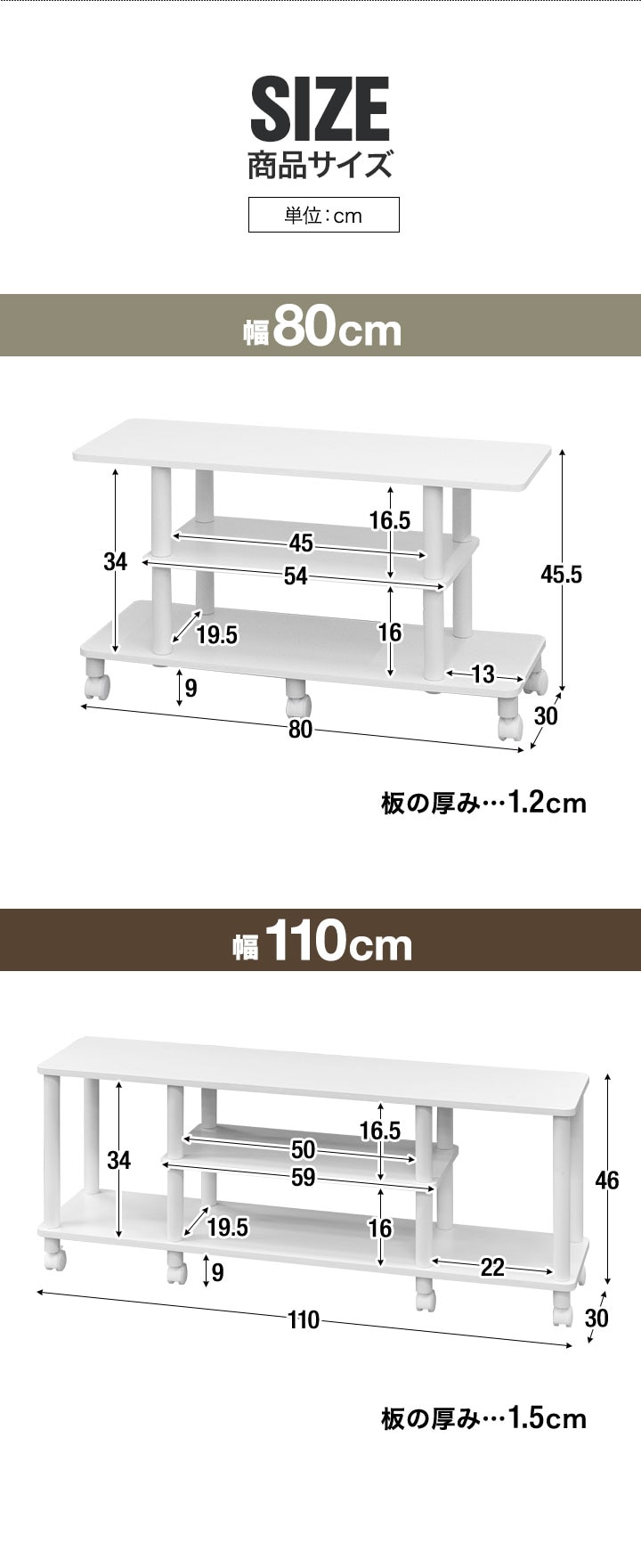 | サイズ: 【幅80cmタイプ】 (約)幅80cm×奥行30cm×高さ45.5cm 【幅110cmタイプ】 (約)幅110cm×奥行30cm×高さ46cm |