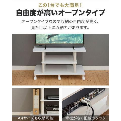 テレビ台 ローボード (ホワイト/幅80cmタイプ) キャスター付き 32型/50型対応 奥行30cm×高さ40cm ロータイプ テレビボード テレビラック 棚付き 3段 工具不要 TVボード TVラック TV台 スリム コンパクト 一人暮らし ラック レコーダー おしゃれ 送料無料