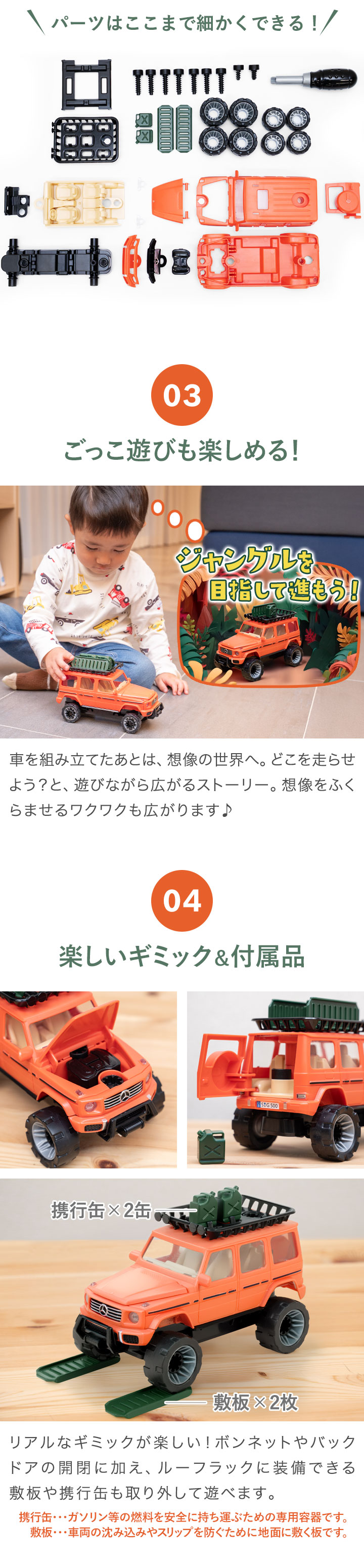 組み立て おもちゃ 車 ミニカー メルセデスベンツ Gクラス 知育玩具 ブロック カスタムセット メルセデス社公認 正規ライセンス製品 2in1 Klein Mercedes Benz G-Class 3807 ネジ ドライバー付き 組立て玩具 DIY 工具 分解 子供 3歳~ 送料無料