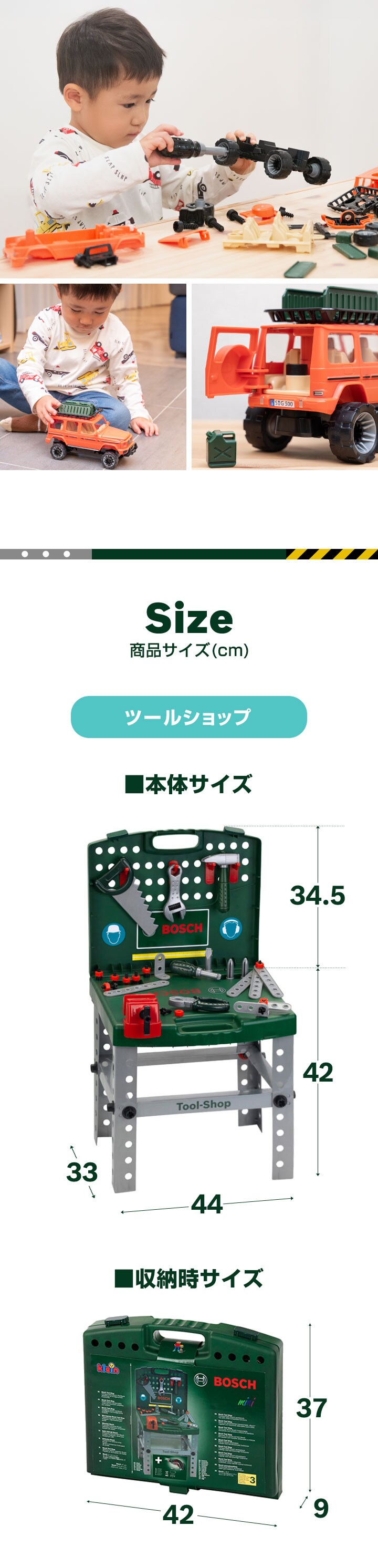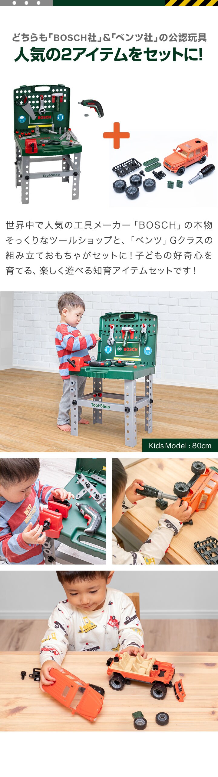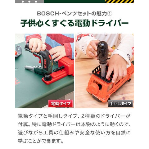 おもちゃ 車&工具セット BOSCH ボッシュ 大工さん 電動ドライバー ドリル ネジ ミニワークセンター / 組み立て ミニカー ベンツ G-Class メルセデス社公認 正規ライセンス お買得セット 知育玩具 組立て玩具 DIY 工具 分解 子供 3歳~ 送料無料