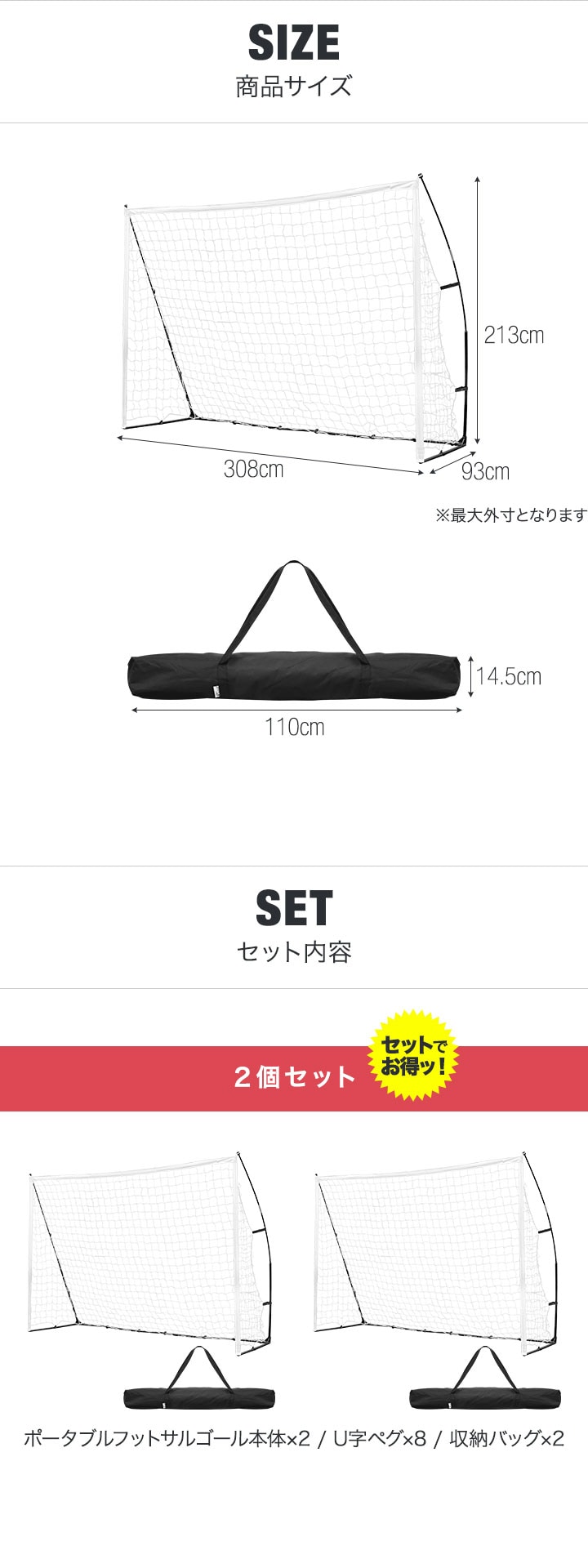 FIELDOOR フットサルゴール 3m×2m (お買得2台セット) 公式サイズ 折りたたみ 組み立て式 持ち運び ポータブルフットサルゴール 収納バッグ付き 練習用ネット ゴールネット サッカーゴール フットサル ゴール サッカー ミニサッカー トレーニング 送料無料