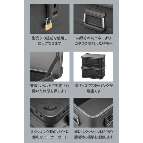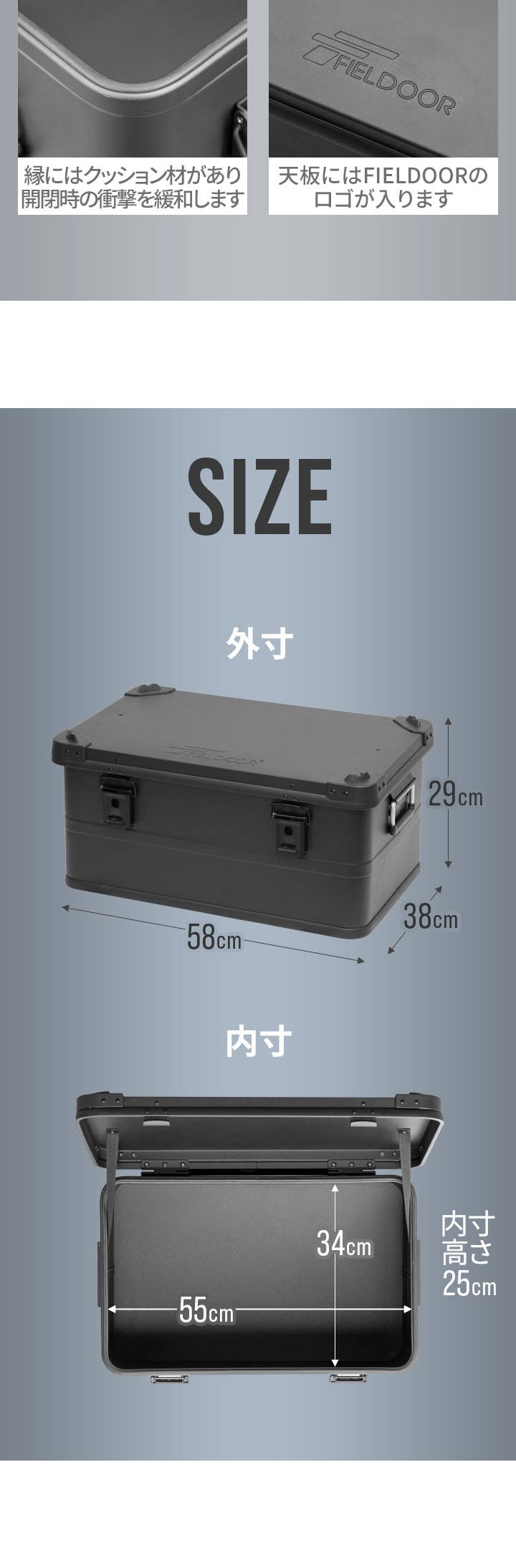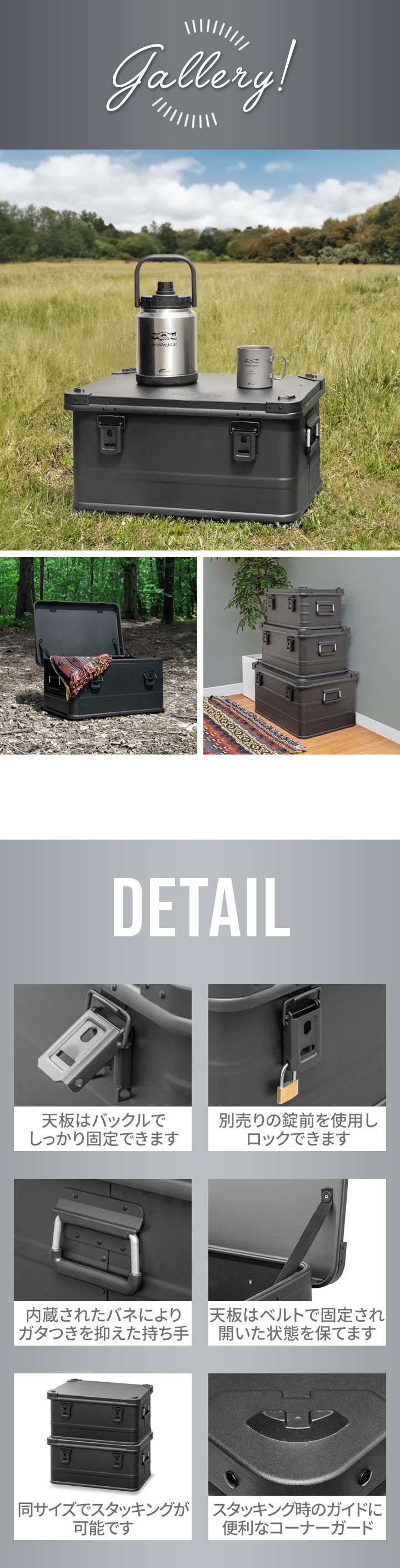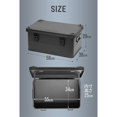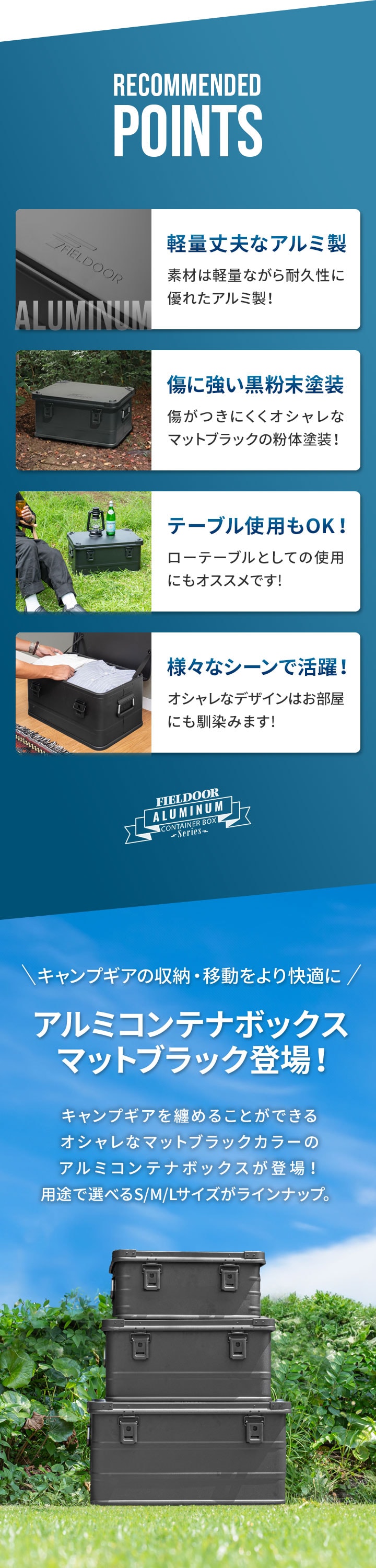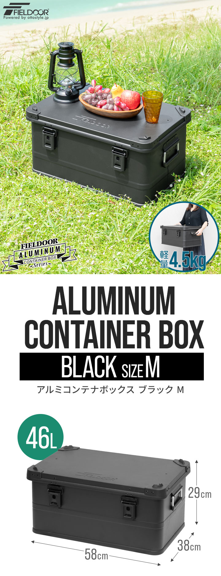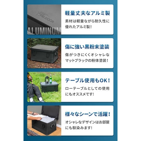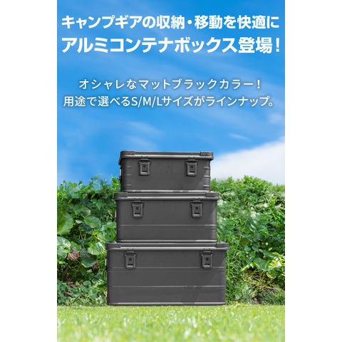 コンテナボックス キャンプ フタ付き 角ガード付き (マットブラック/Mサイズ:58cm/単品) 軽量 アルミ 収納ボックス アウトドア 収納BOX 収納ケース アルミボックス キャンプ用品 アウトドア収納 コンテナ BOX 軽量 頑丈 大容量 送料無料