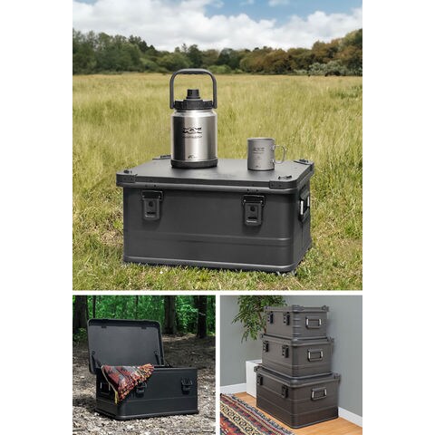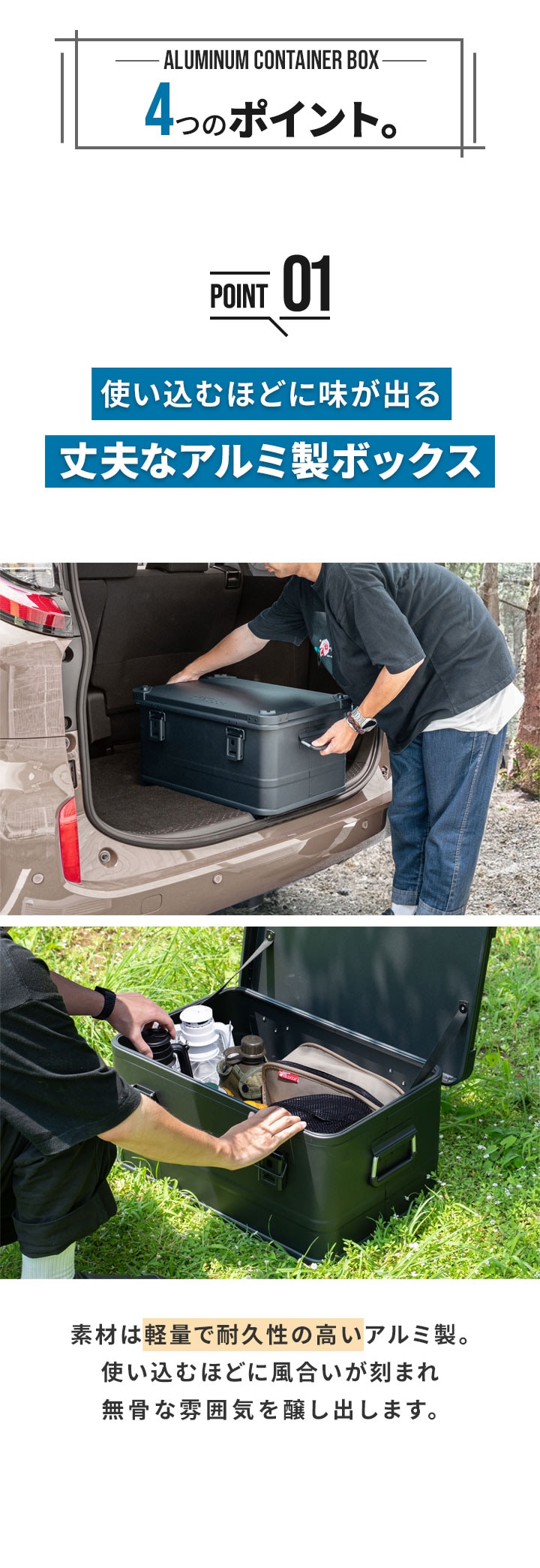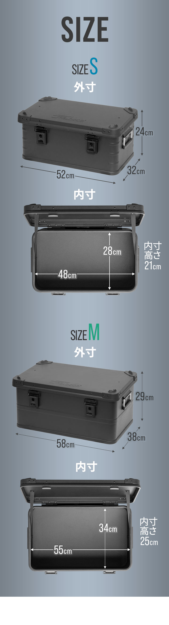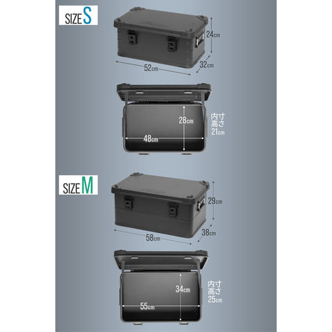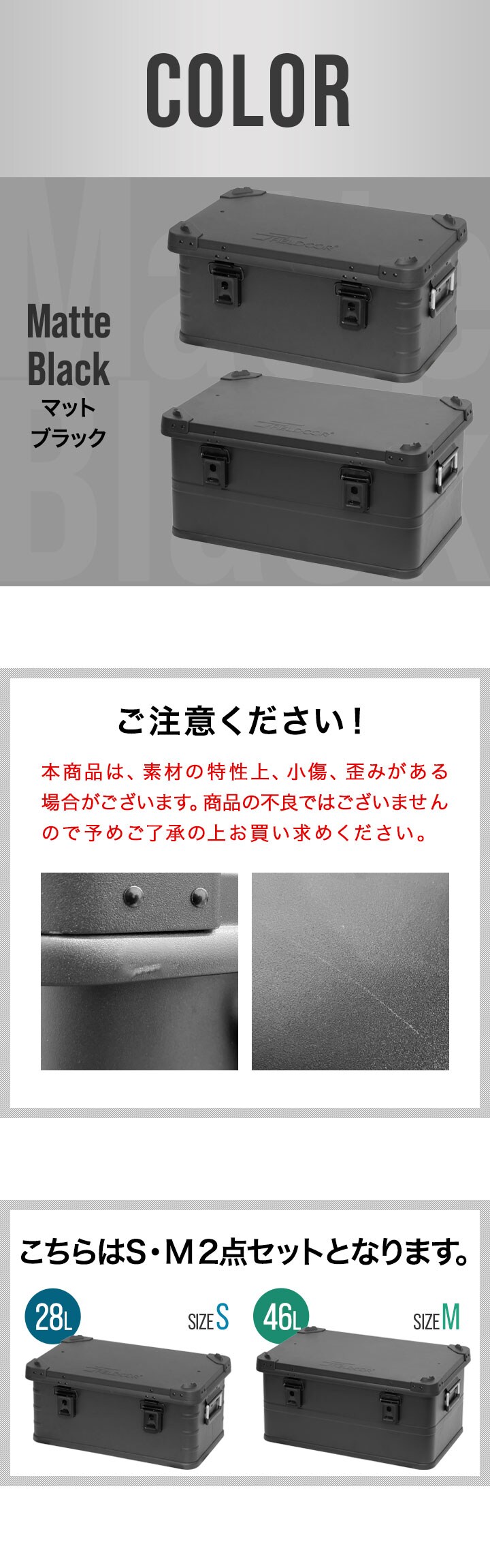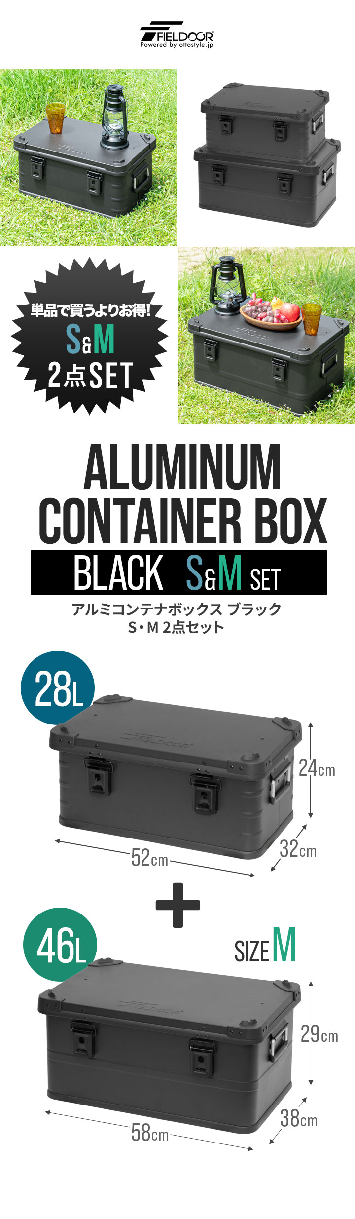 コンテナボックス キャンプ フタ付き 角ガード付き (マットブラック/S&M/2点セット) 軽量 アルミ 収納ボックス アウトドア 収納BOX 収納ケース アルミボックス キャンプ用品 アウトドア収納 コンテナ BOX 軽量 頑丈 大容量 送料無料