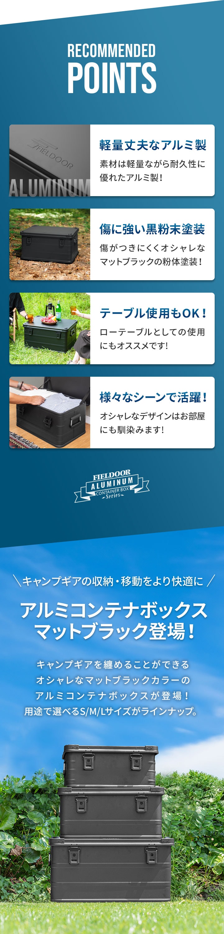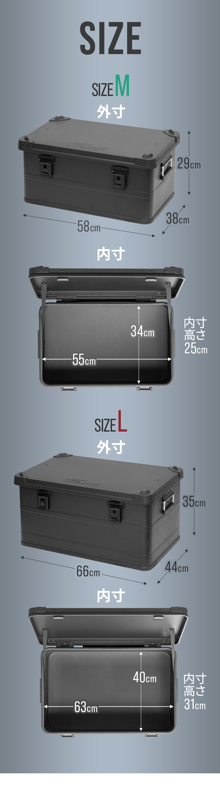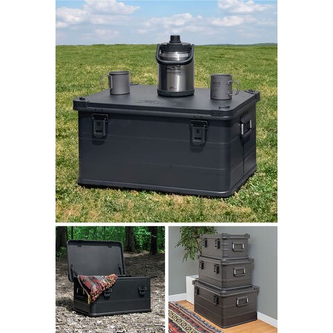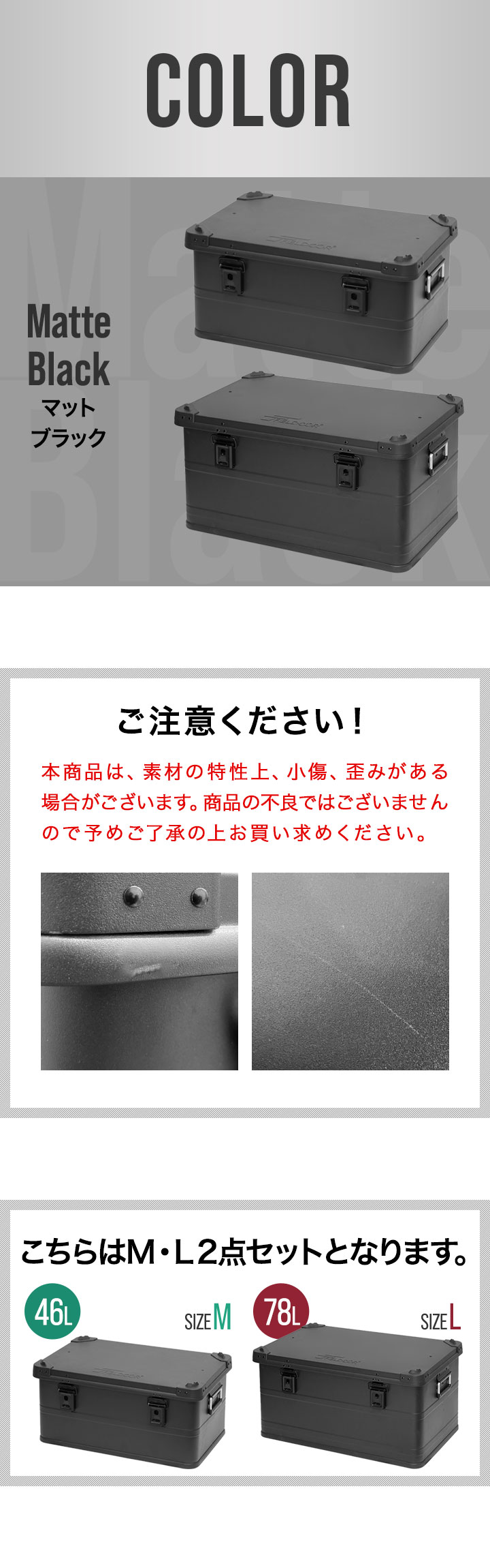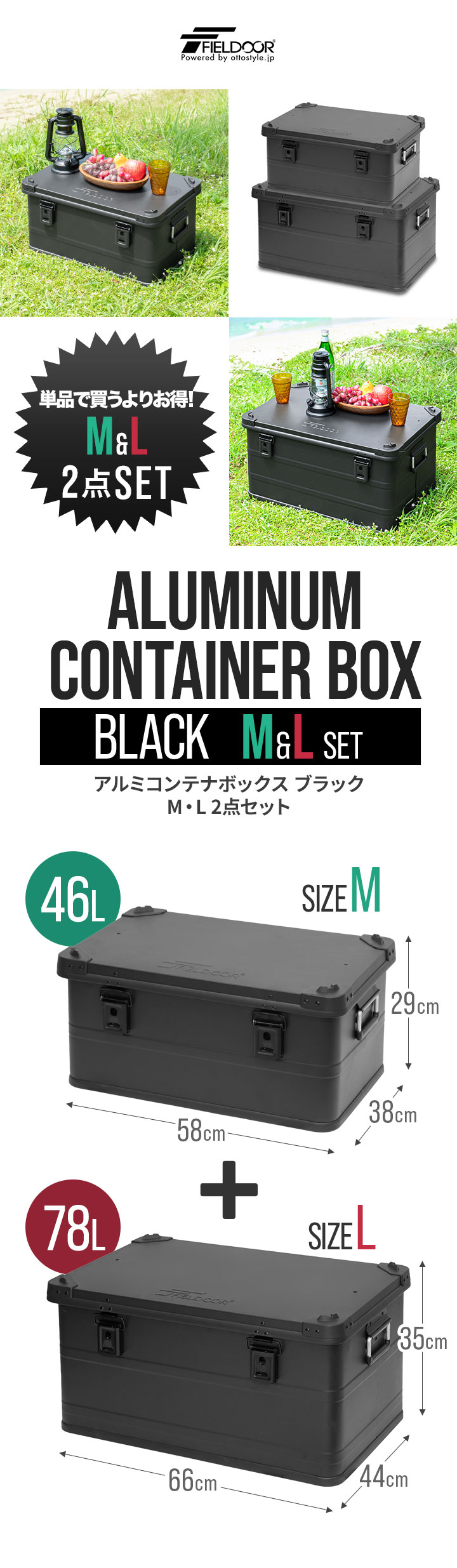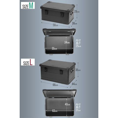 コンテナボックス キャンプ フタ付き 角ガード付き (マットブラック/M&L/2点セット) 軽量 アルミ 収納ボックス アウトドア 収納BOX 収納ケース アルミボックス キャンプ用品 アウトドア収納 コンテナ BOX 軽量 頑丈 大容量 送料無料