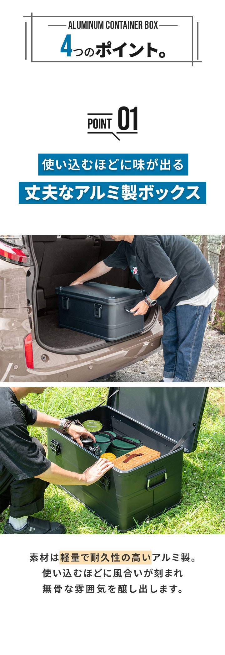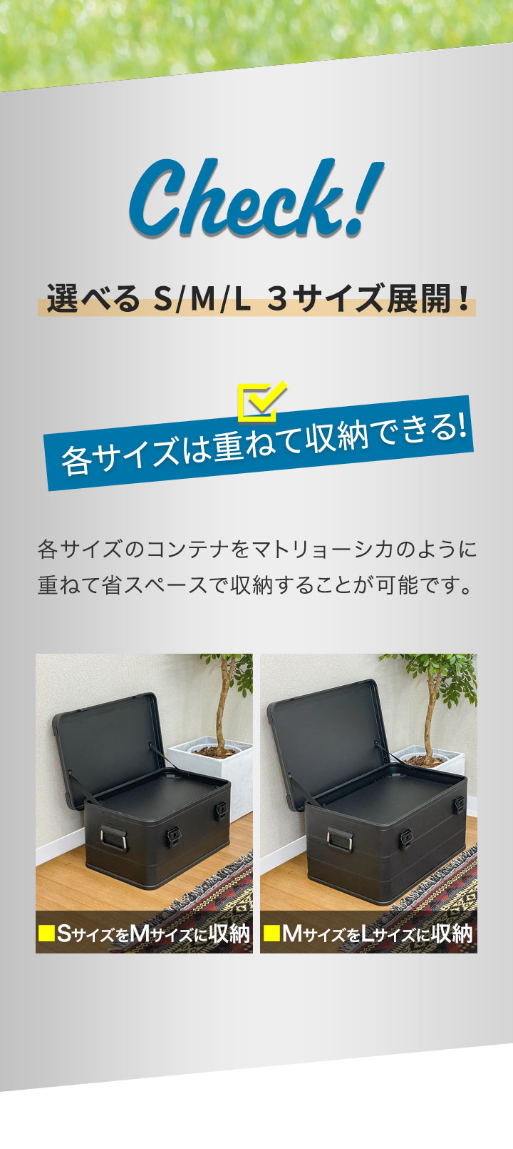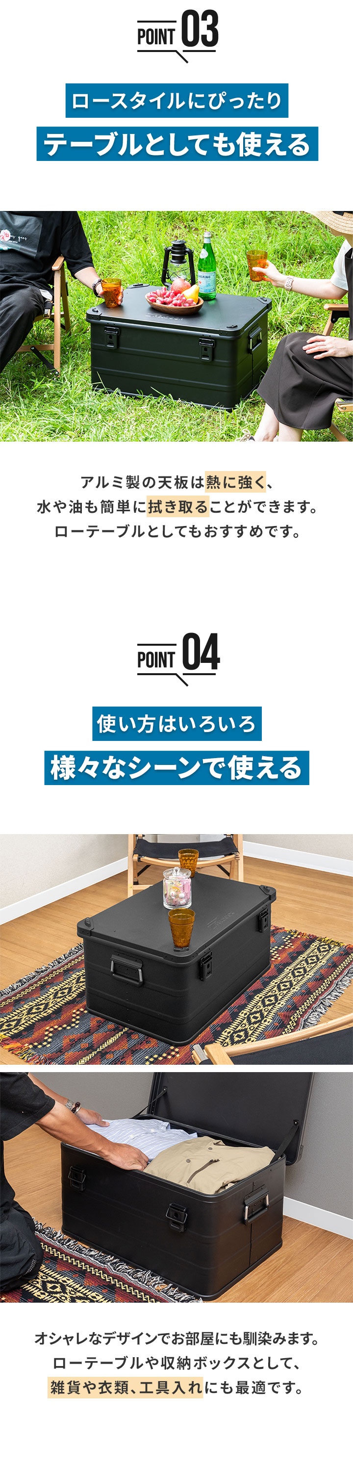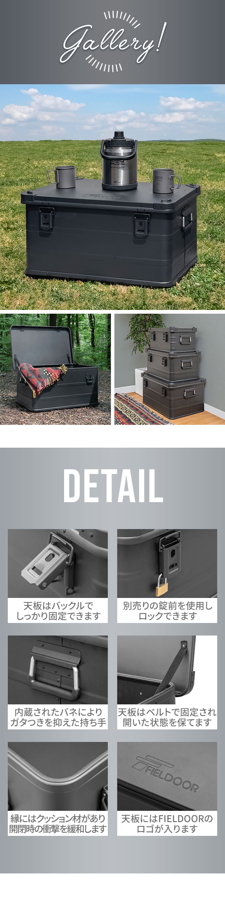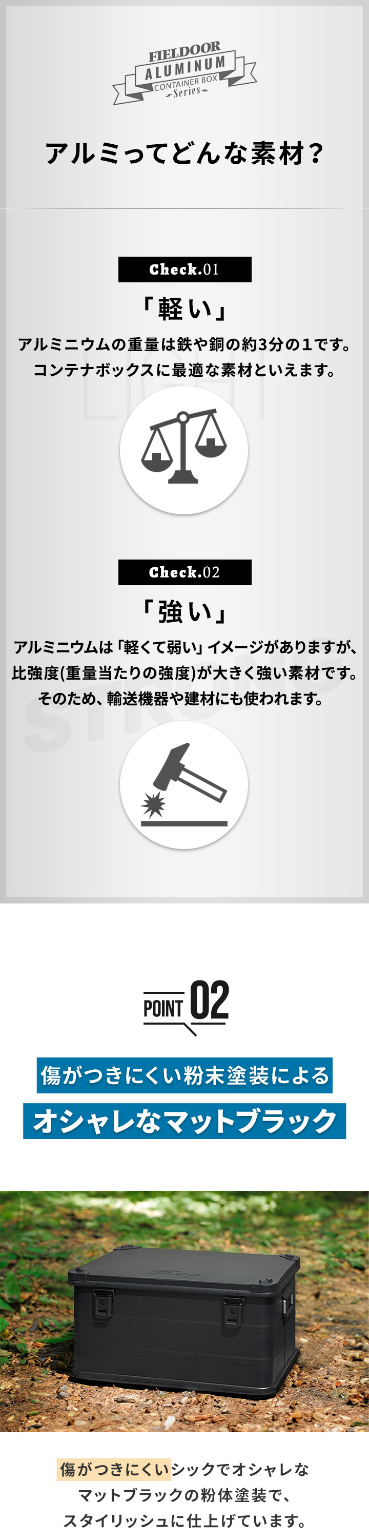 コンテナボックス キャンプ フタ付き 角ガード付き (マットブラック/M&L/2点セット) 軽量 アルミ 収納ボックス アウトドア 収納BOX 収納ケース アルミボックス キャンプ用品 アウトドア収納 コンテナ BOX 軽量 頑丈 大容量 送料無料