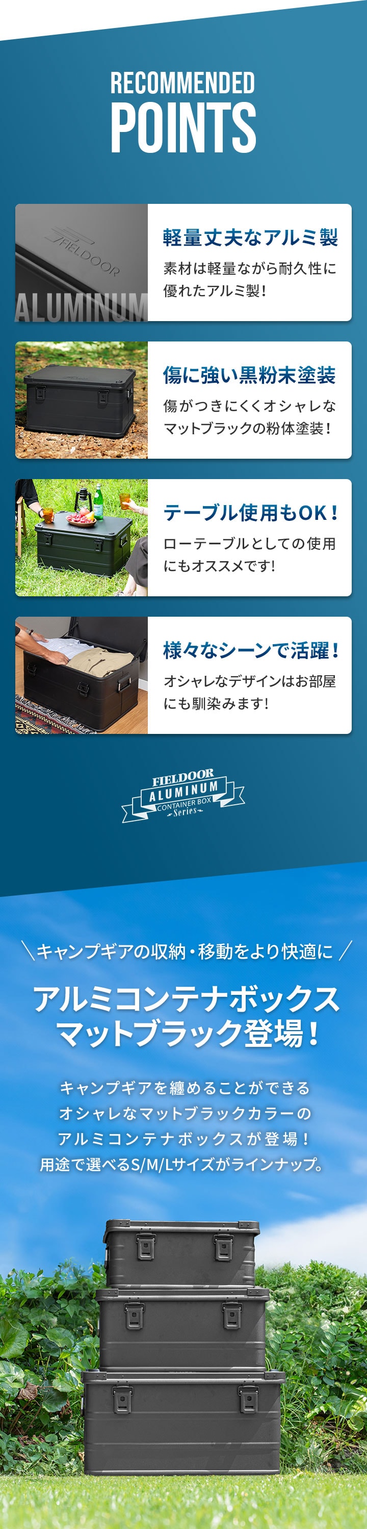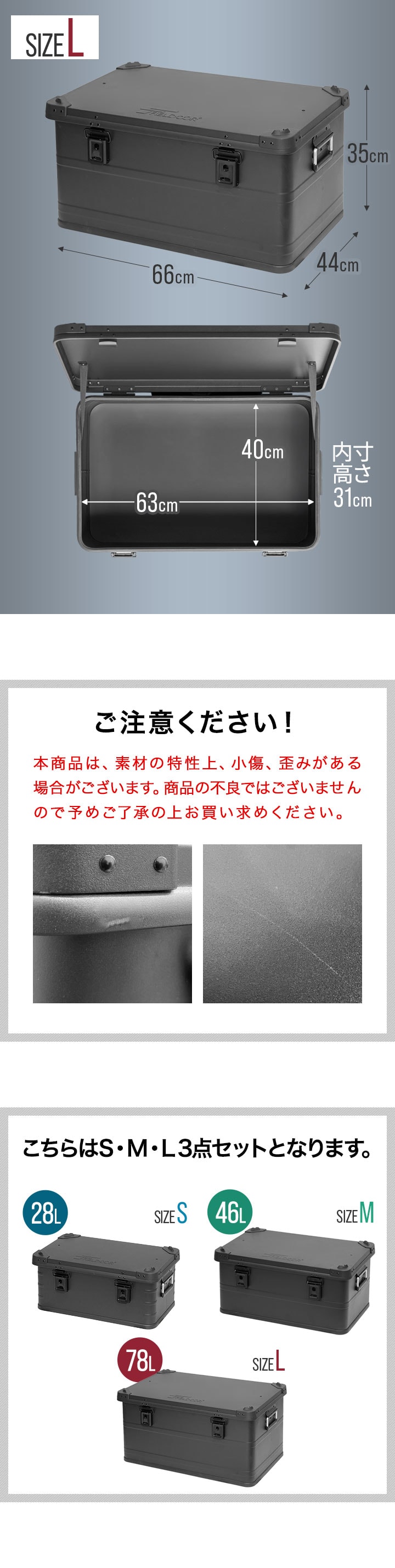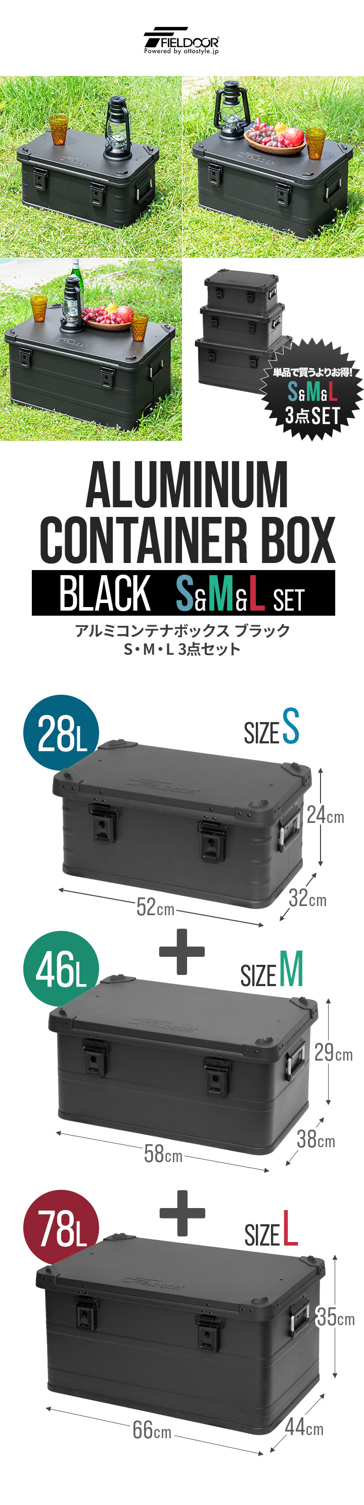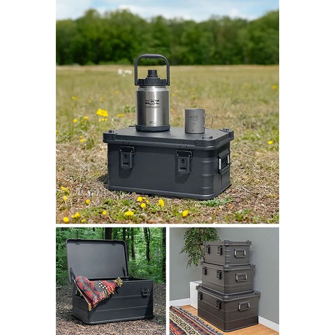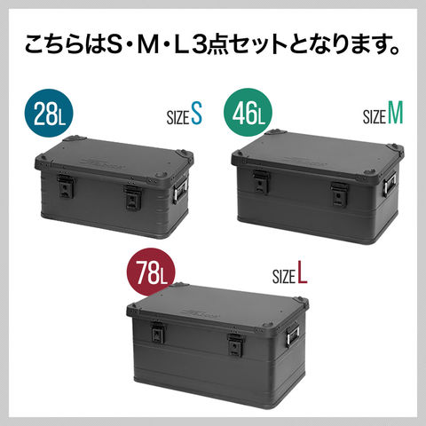 コンテナボックス キャンプ フタ付き 角ガード付き (マットブラック/S&M&L/3点セット) 軽量 アルミ 収納ボックス アウトドア 収納BOX 収納ケース アルミボックス キャンプ用品 アウトドア収納 コンテナ BOX 軽量 頑丈 大容量 送料無料
