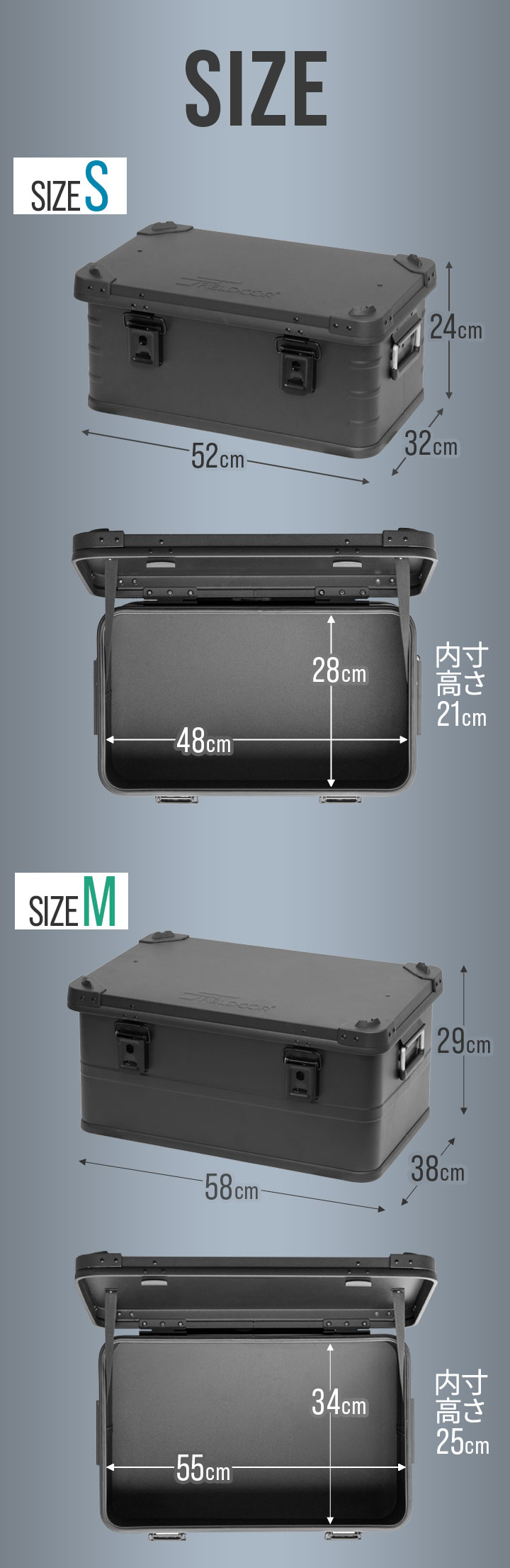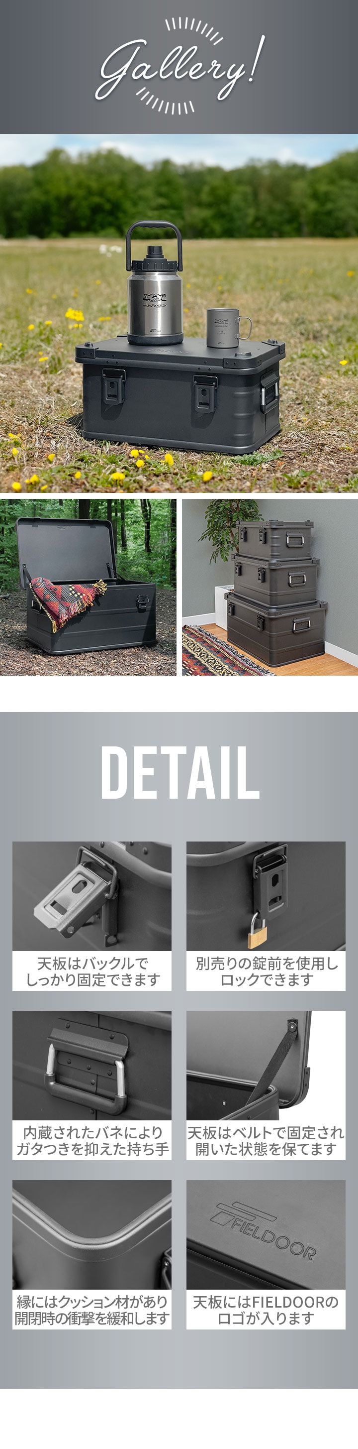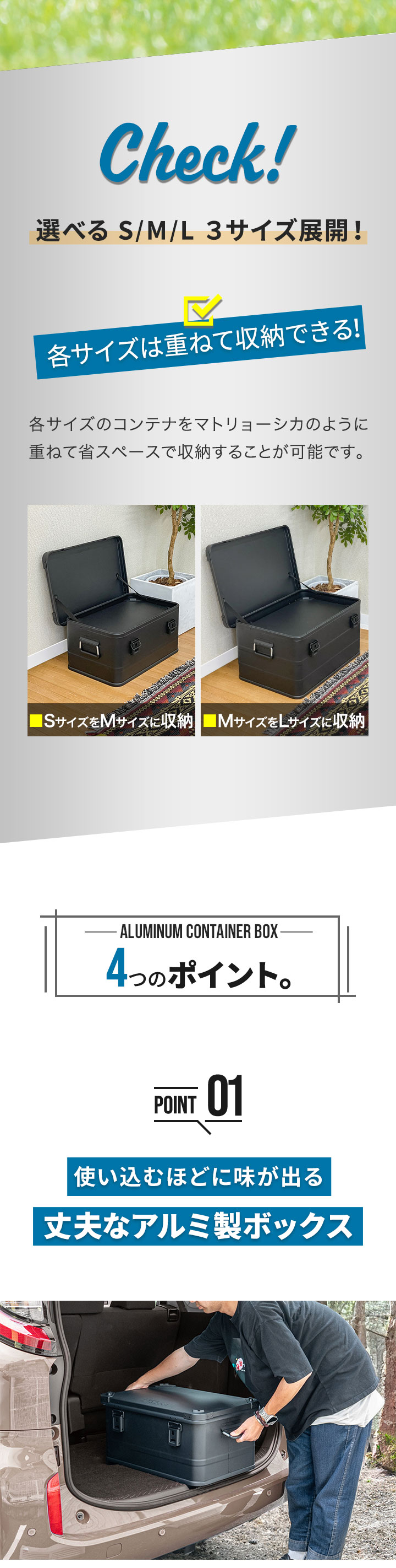 コンテナボックス キャンプ フタ付き 角ガード付き (マットブラック/S&M&L/3点セット) 軽量 アルミ 収納ボックス アウトドア 収納BOX 収納ケース アルミボックス キャンプ用品 アウトドア収納 コンテナ BOX 軽量 頑丈 大容量 送料無料