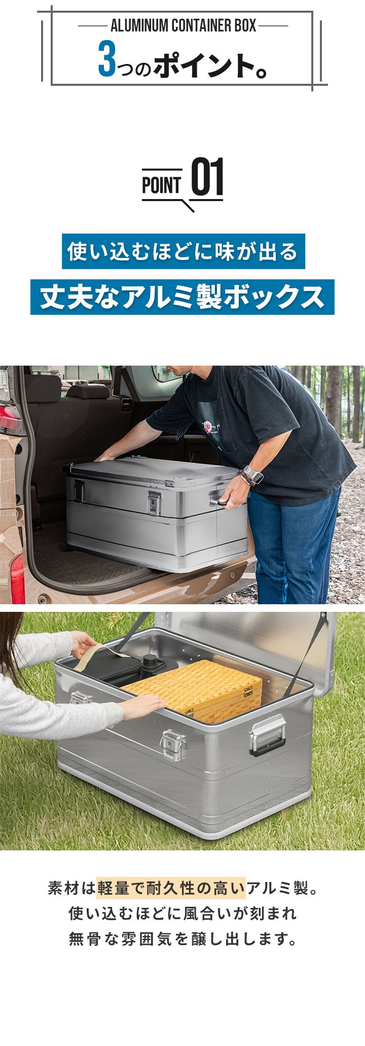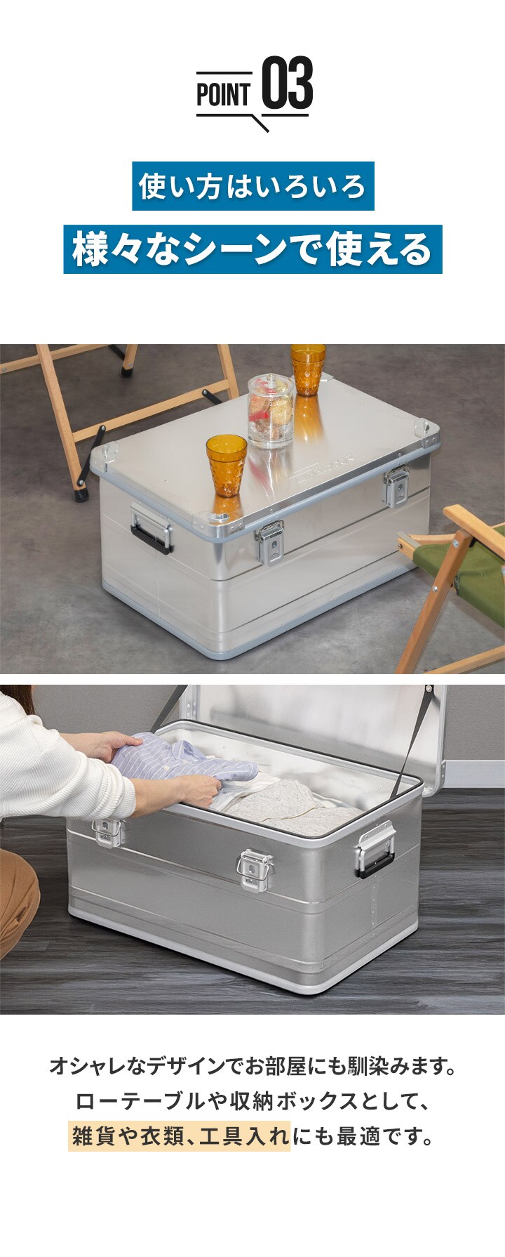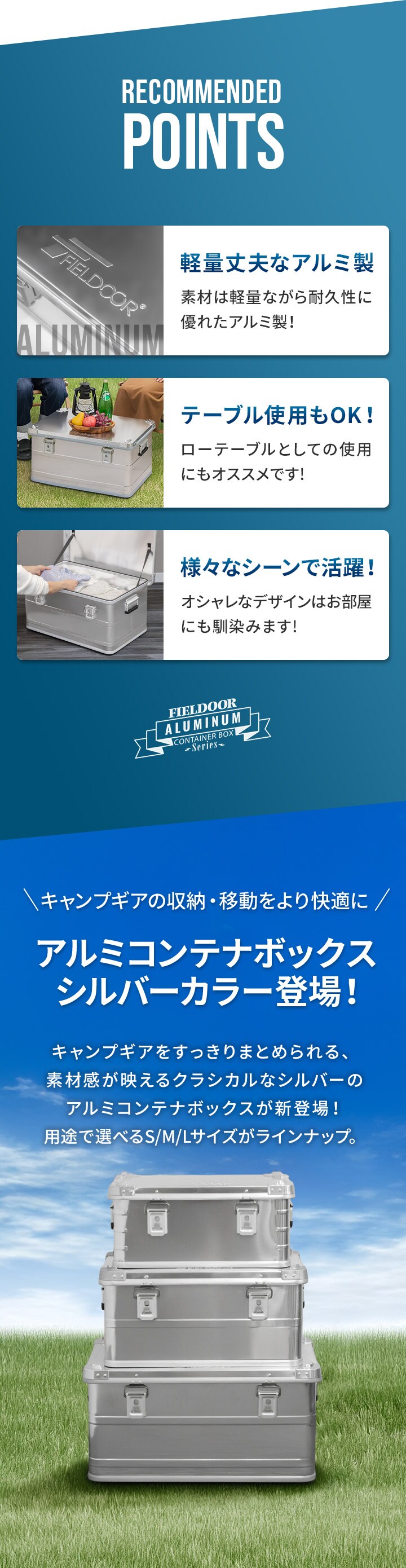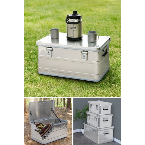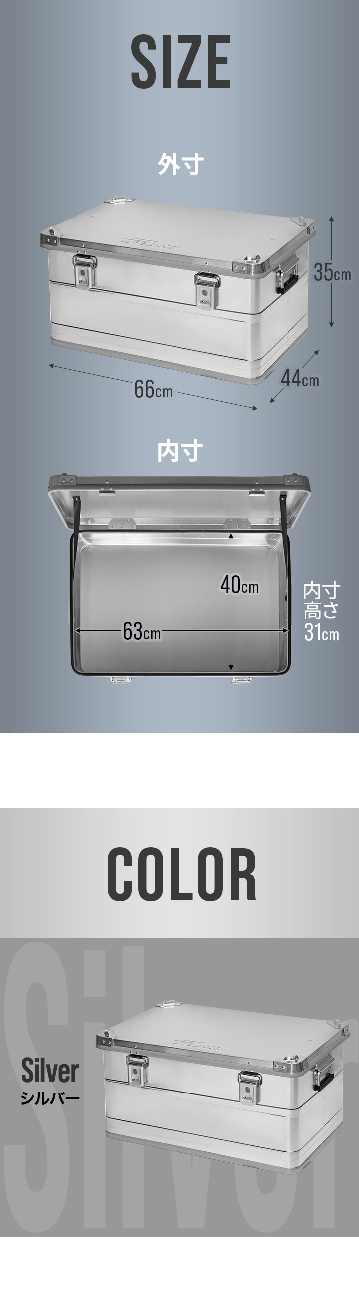 コンテナボックス キャンプ フタ付き 角ガード付き (シルバー/Lサイズ:66cm/単品) 軽量 アルミ 収納ボックス アウトドア 収納BOX 収納ケース アルミボックス キャンプ用品 アウトドア収納 コンテナ BOX 軽量 頑丈 大容量 送料無料