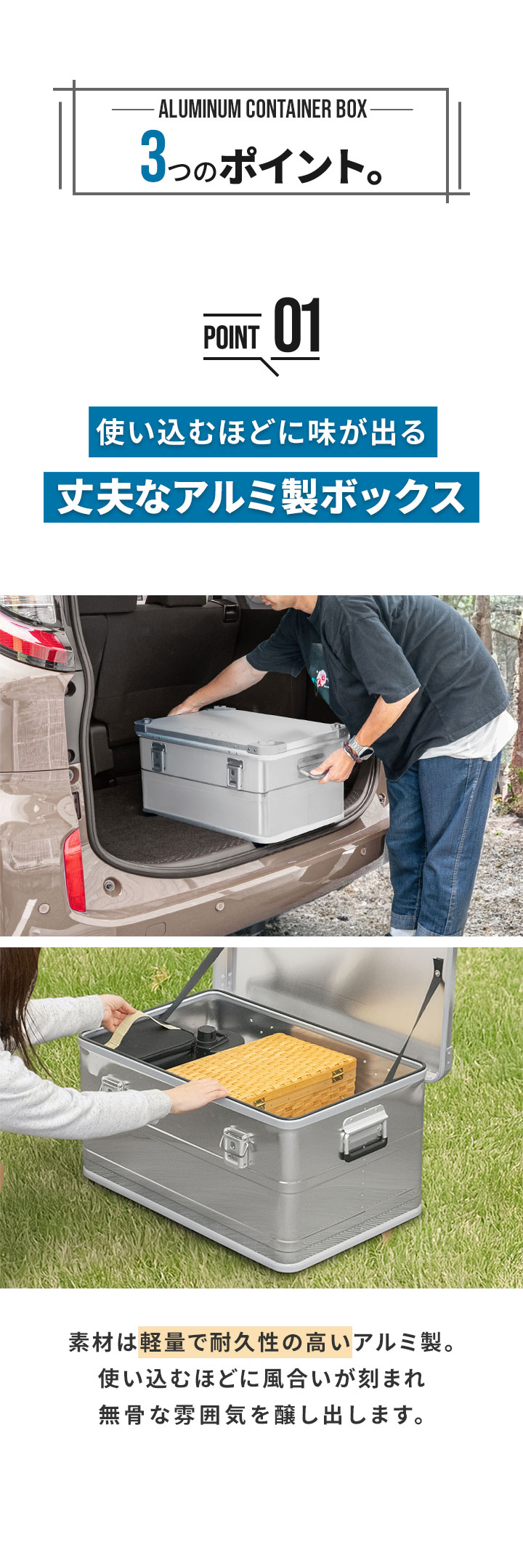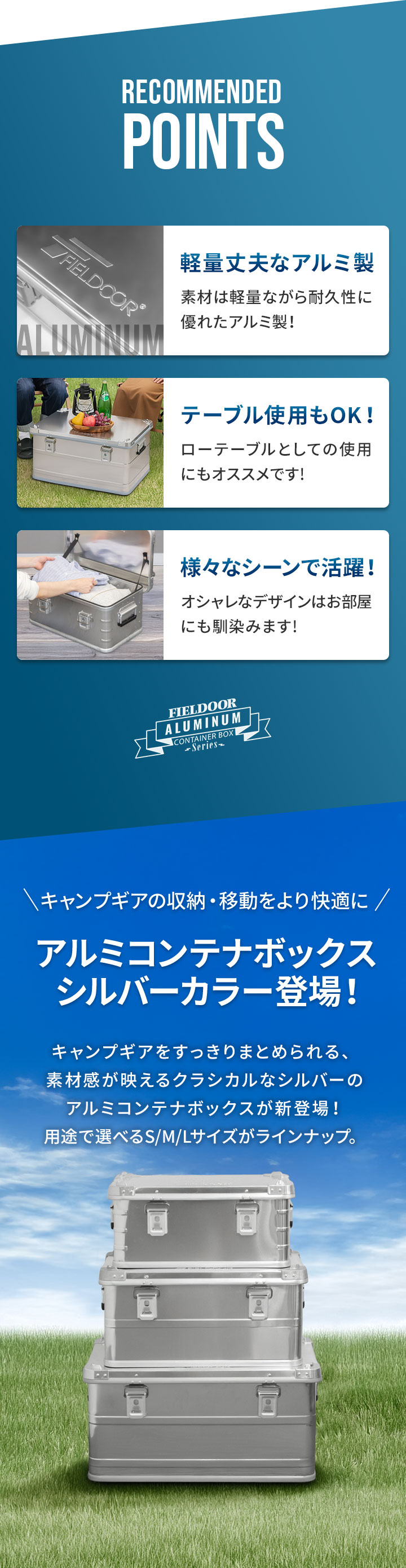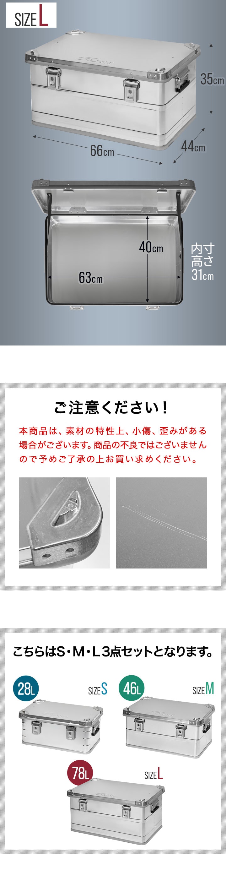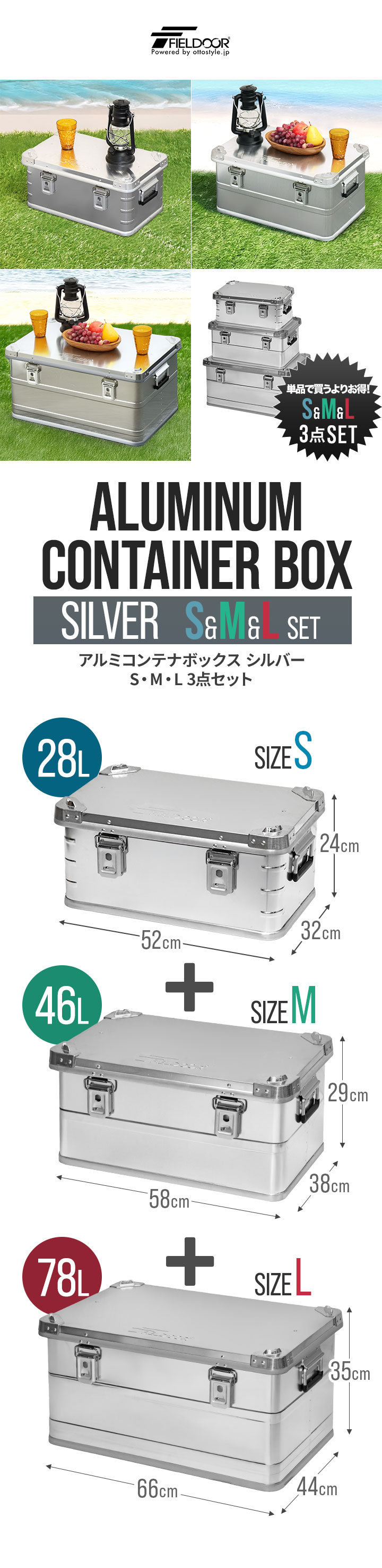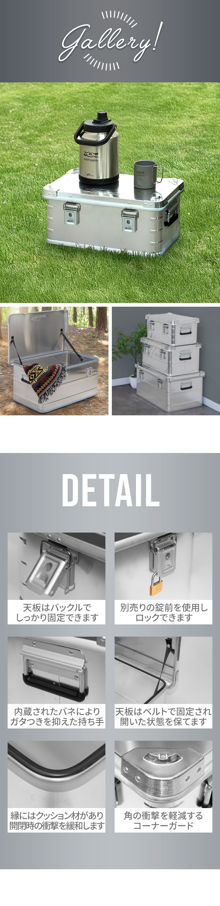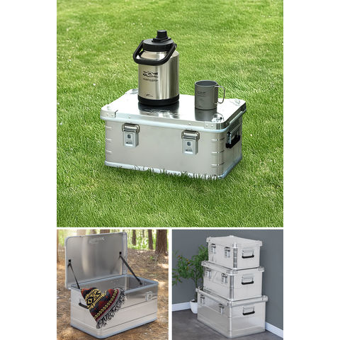 コンテナボックス キャンプ フタ付き 角ガード付き (シルバー/S&M&L/3点セット) 軽量 アルミ 収納ボックス アウトドア 収納BOX 収納ケース アルミボックス キャンプ用品 アウトドア収納 コンテナ BOX 軽量 頑丈 大容量 送料無料