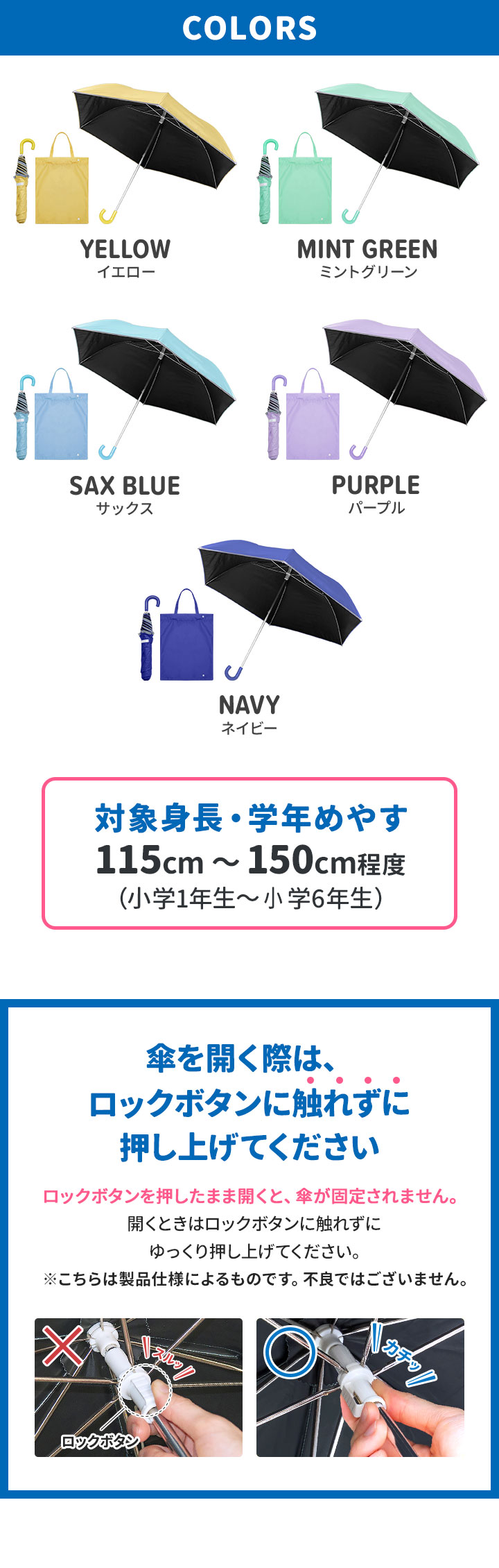 | カラー: ・イエロー ・ミントグリーン ・サックス ・パープル ・ネイビー |