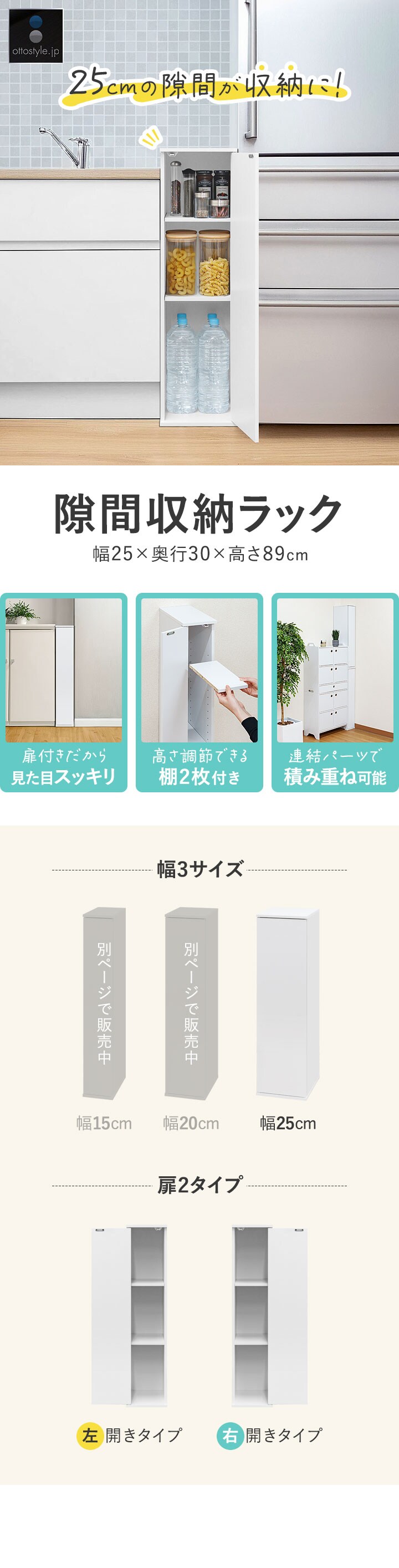 隙間収納 キッチン (左開きタイプ/幅25cm) 扉付き 収納棚 奥行30cm×高さ89cm 収納ラック 3段 ロータイプ ストッカー キッチン収納 すき間収納 すきま収納 省スペース 台所 ランドリー収納 スリムラック スリムストッカー 隠す 隠せる 北欧 おしゃれ 送料無料