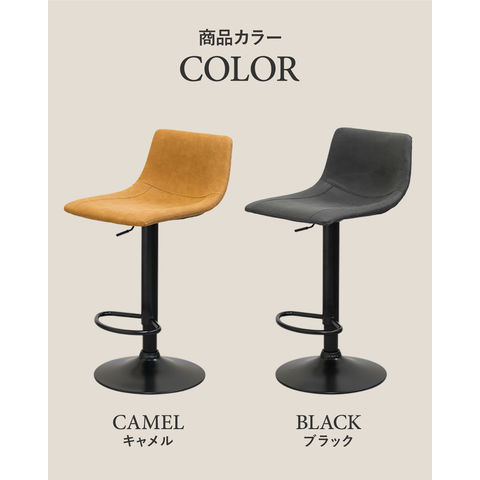 カウンターチェア バーチェア (キャメル/同色2脚セット) 背もたれ付き 回転 ガス圧昇降 高さ調整 座面高61~82cm PUレザー/ヴィンテージ加工 カウンターチェアー ハイチェア ハイタイプ 椅子 イス キッチンカウンター モダン カフェ シンプル 80cm 送料無料
