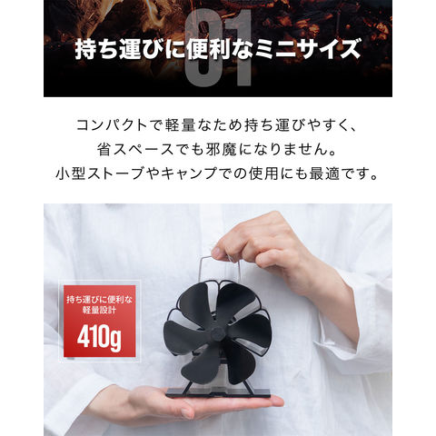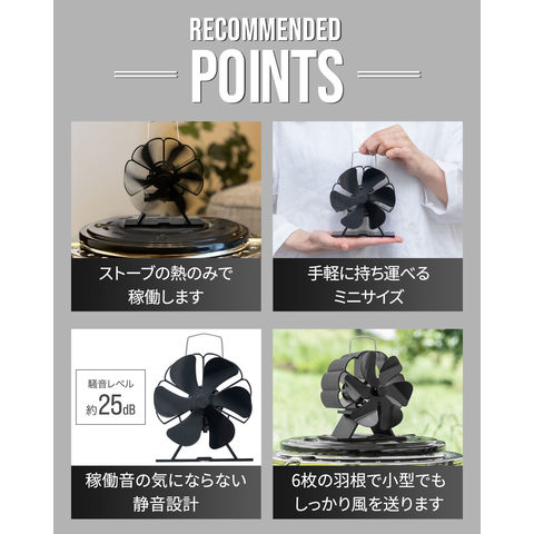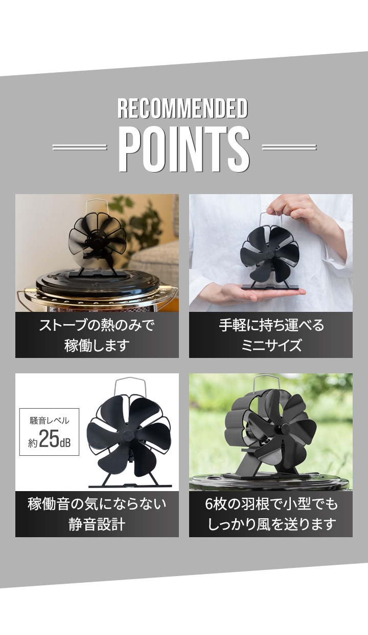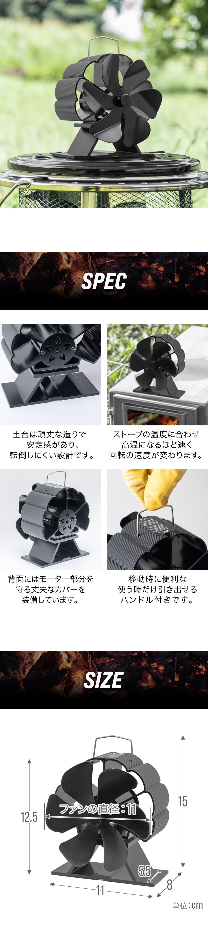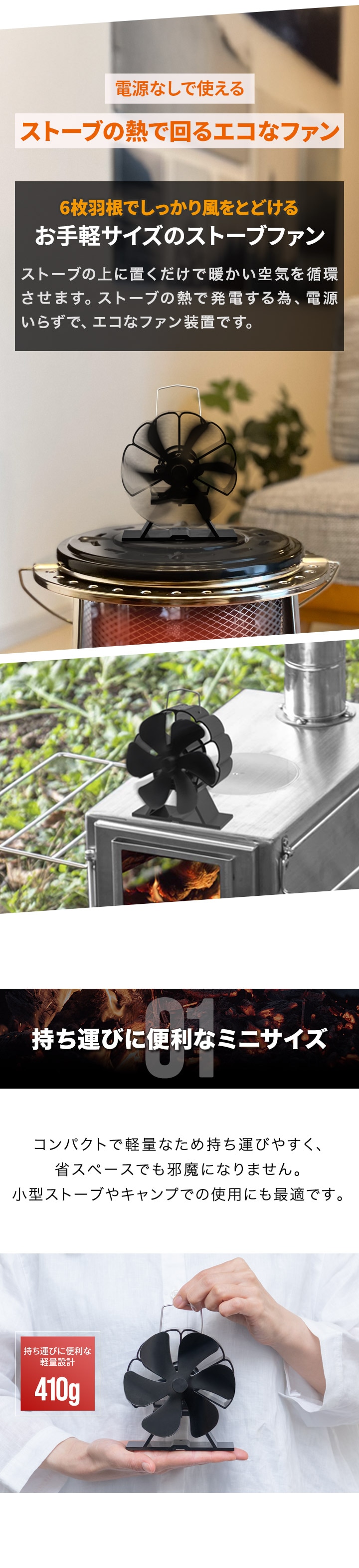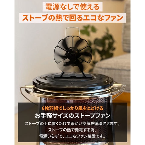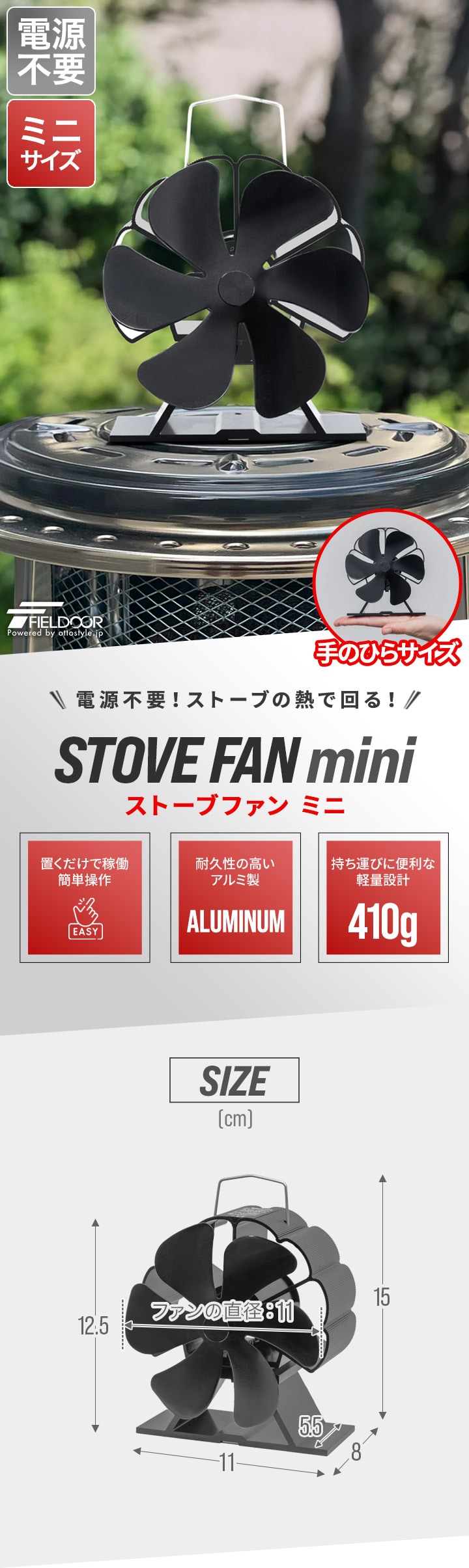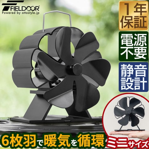 FIELDOOR ストーブファン 6枚羽根 (本体&収納ケースセット) 直径約11cm ミニサイズ エコ 電源不要 省エネ 薪ストーブ・石油ストーブ・灯油ストーブ・ガスストーブなどに。安心安全 加熱保護プレート付き 静音 暖気 空気循環 暖房 エコストーブファン 火力熱炉ファン 送料無料