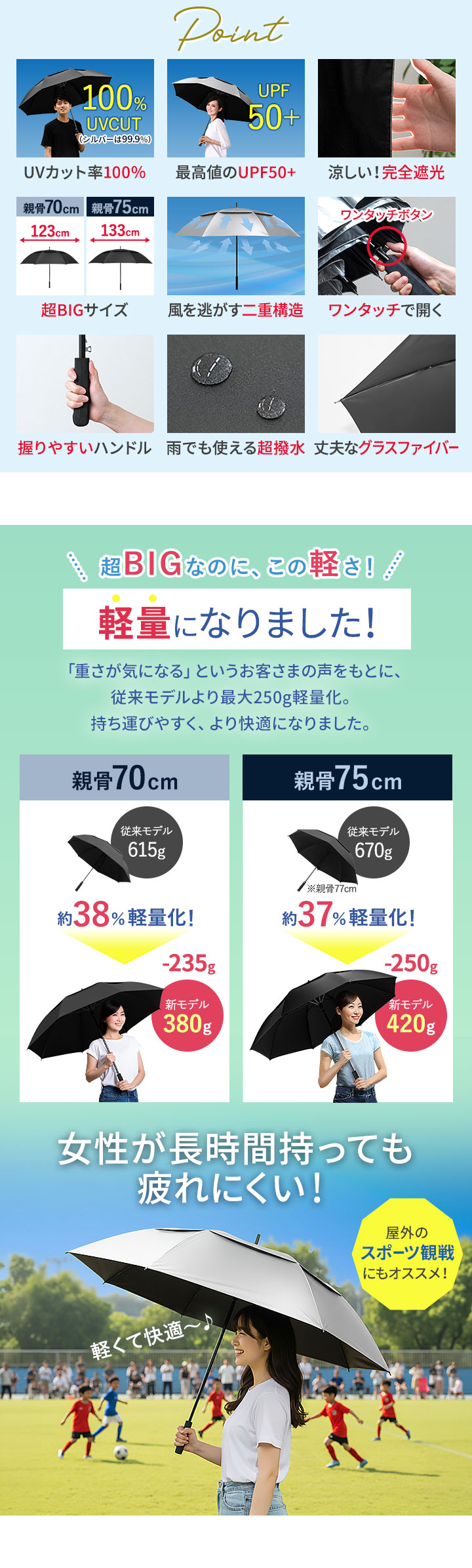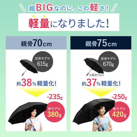 | 重量: 【親骨:70cm】:(約)380g 【親骨:75cm】:(約)420g |