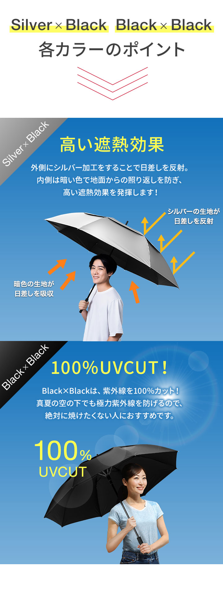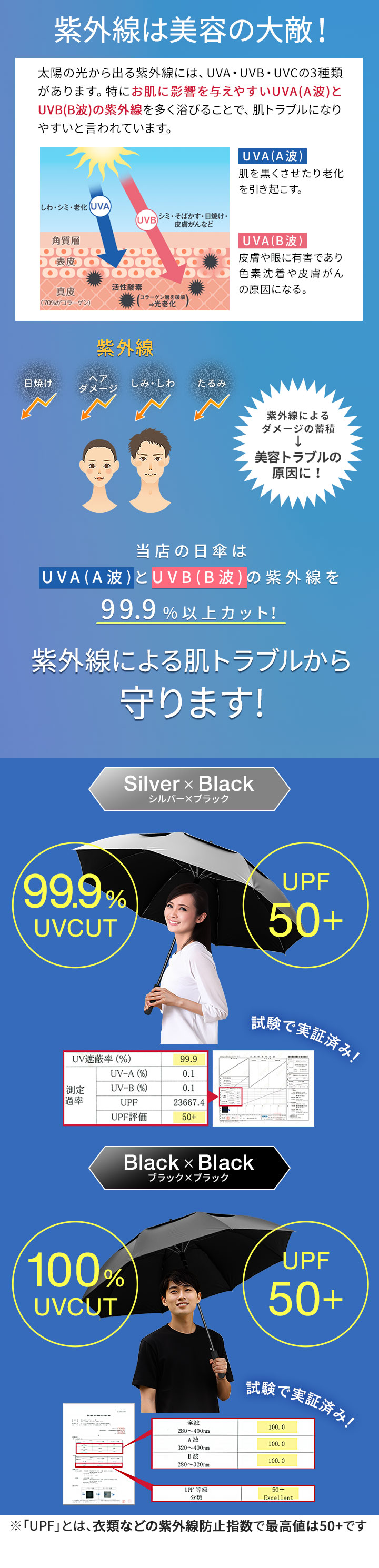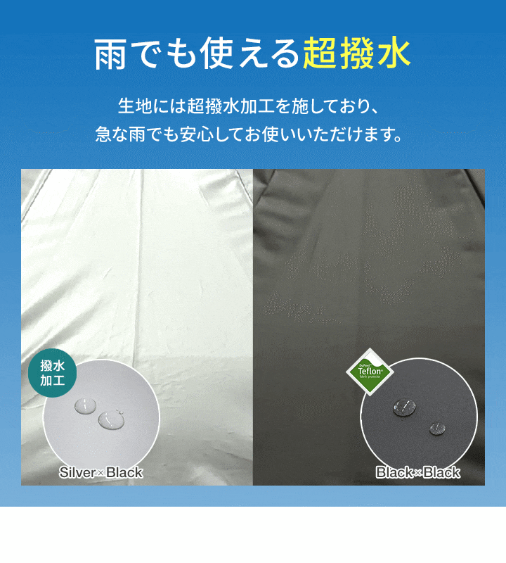 | UV遮蔽率: シルバー×ブラック:99.9% ブラック×ブラック:100% |