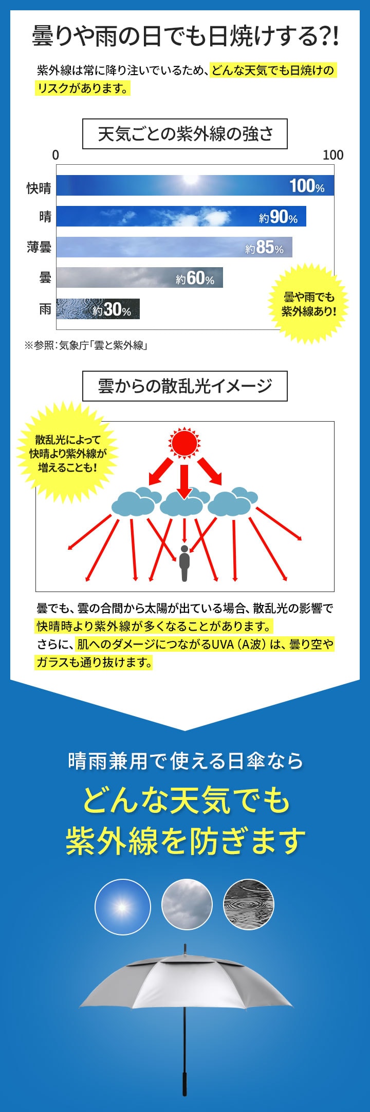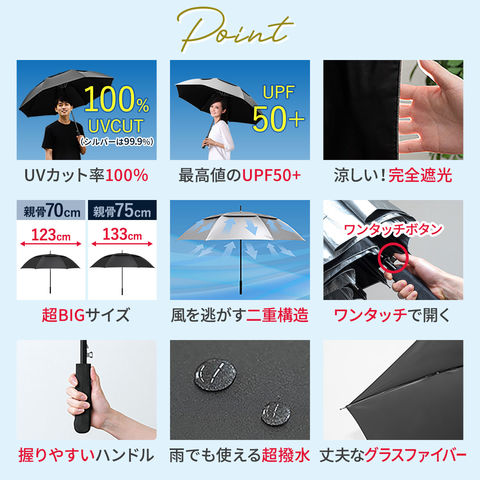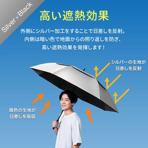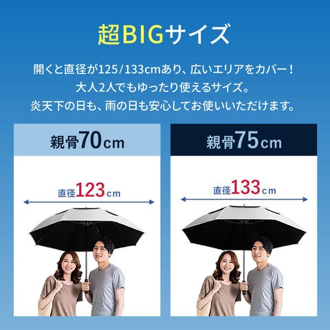 晴雨兼用傘 日傘 大きいサイズ (シルバー×ブラック/親骨75・直径133cm) メンズ レディース 完全遮光 遮熱 UVカット 紫外線対策 熱中症対策 長傘 ジャンプ傘 撥水 軽量 ワイド 雨傘 親骨75cm/直径133cm 70cm/123cm 通勤 通学 日焼け 梅雨 おしゃれ 送料無料