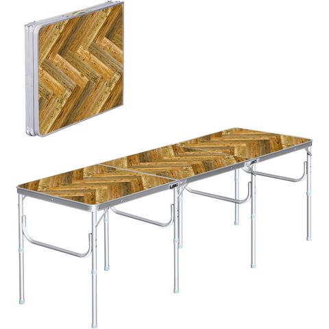 FIELDOOR アウトドアテーブル 折りたたみ 三つ折り (ヘリンボーンヴィンテージ/幅240cm×奥行60cm) アルミ レジャーテーブル 長机 ワイド 大型 6人?8人 対応 高さ調整 2段階 キャンプ バーベキュー BBQ イベント 運動会 作業台 軽量 コンパクト収納 大人数対応 送料無料