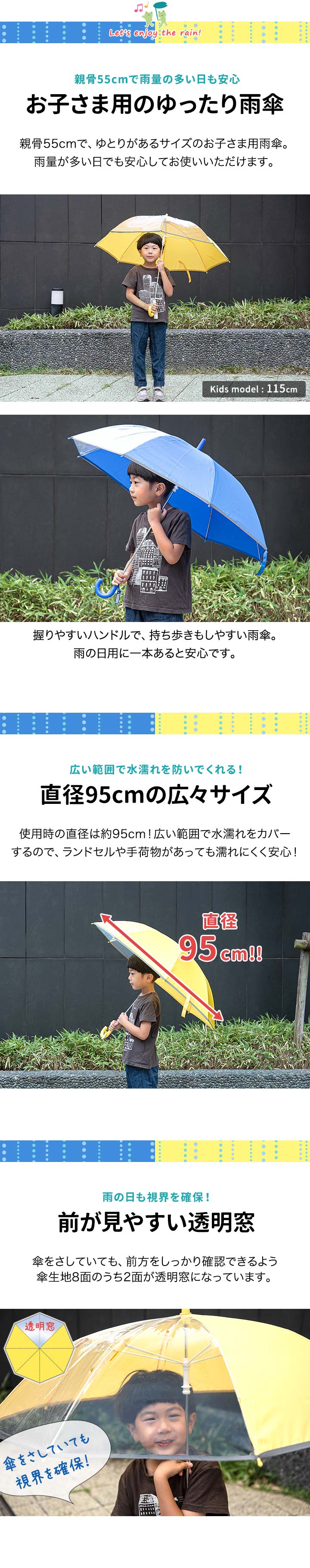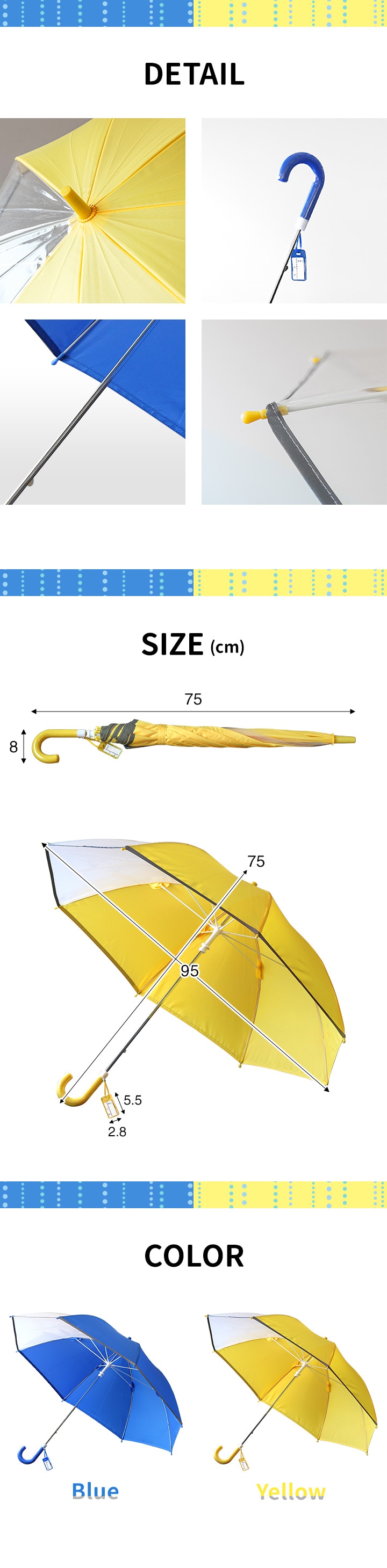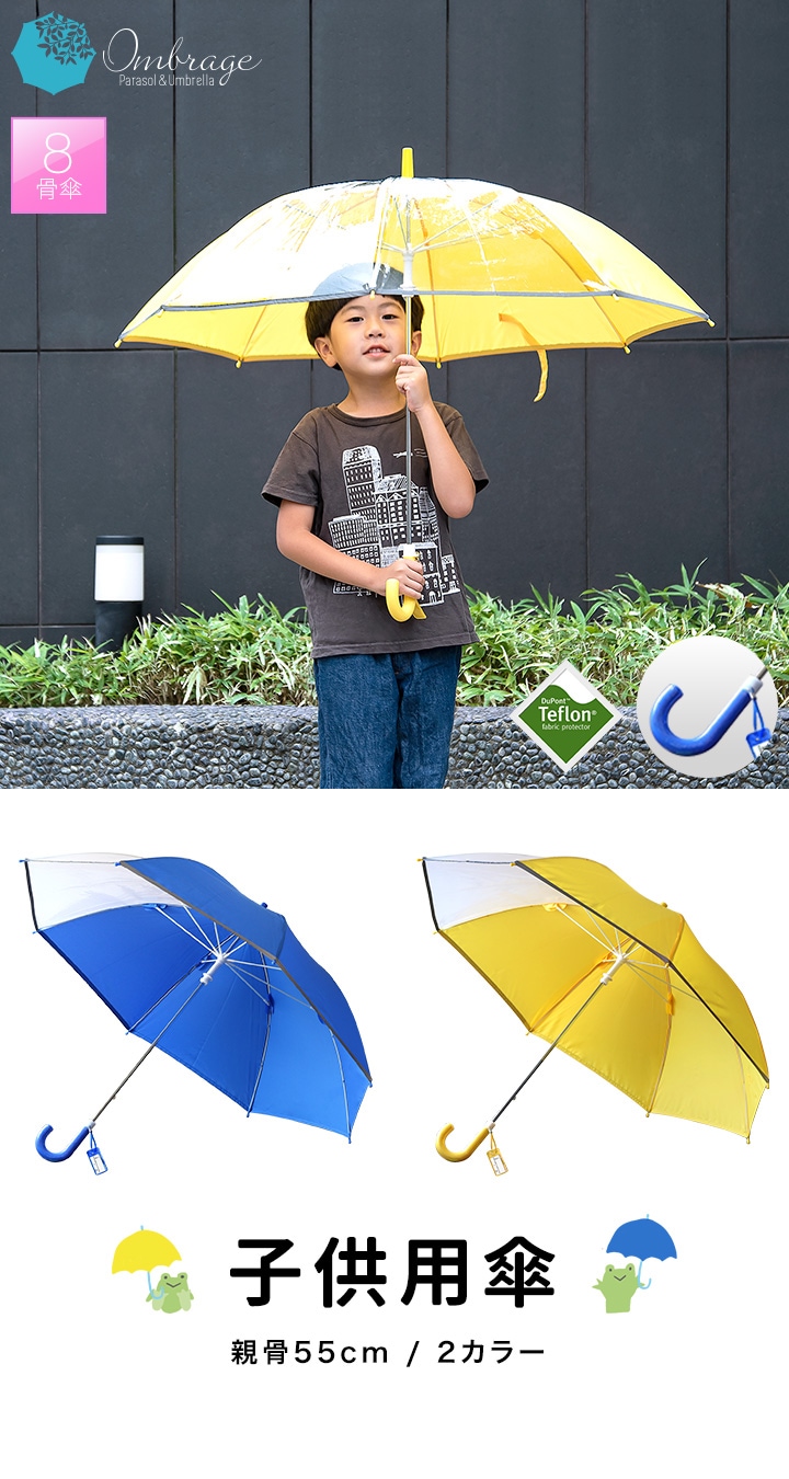 Ombrage 傘 子供用 (2本セット/ブルー&ブルー) 55cm 直径95cm ゆったり大きめサイズ 透明窓・反射テープ付き 超撥水テフロン加工 手開き 軽い 軽量 前が見える窓あり 安全 傘 カサ かさ 雨傘 かわいい 大きい 子ども用 キッズ 小学校 入学 通園 通学 登校 送料無料
