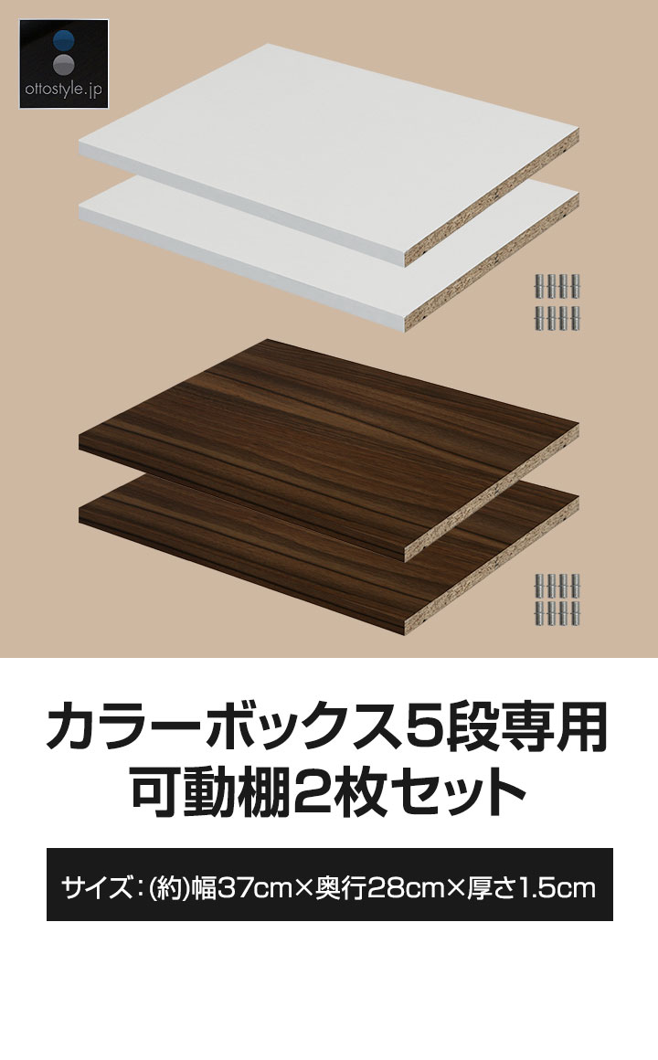 カラーボックス 追加棚板 可動棚専用 (ホワイト2枚セット) 幅37×奥行28cm カラーボックス5段専用 可動棚2枚セット 棚ダボ8個付き 木目調 壁面収納 収納棚 カラーBOX 省スペース 収納ボックス シェルフ ラック オープンラック 1年保証 ※カラーボックス本体別売 送料無料