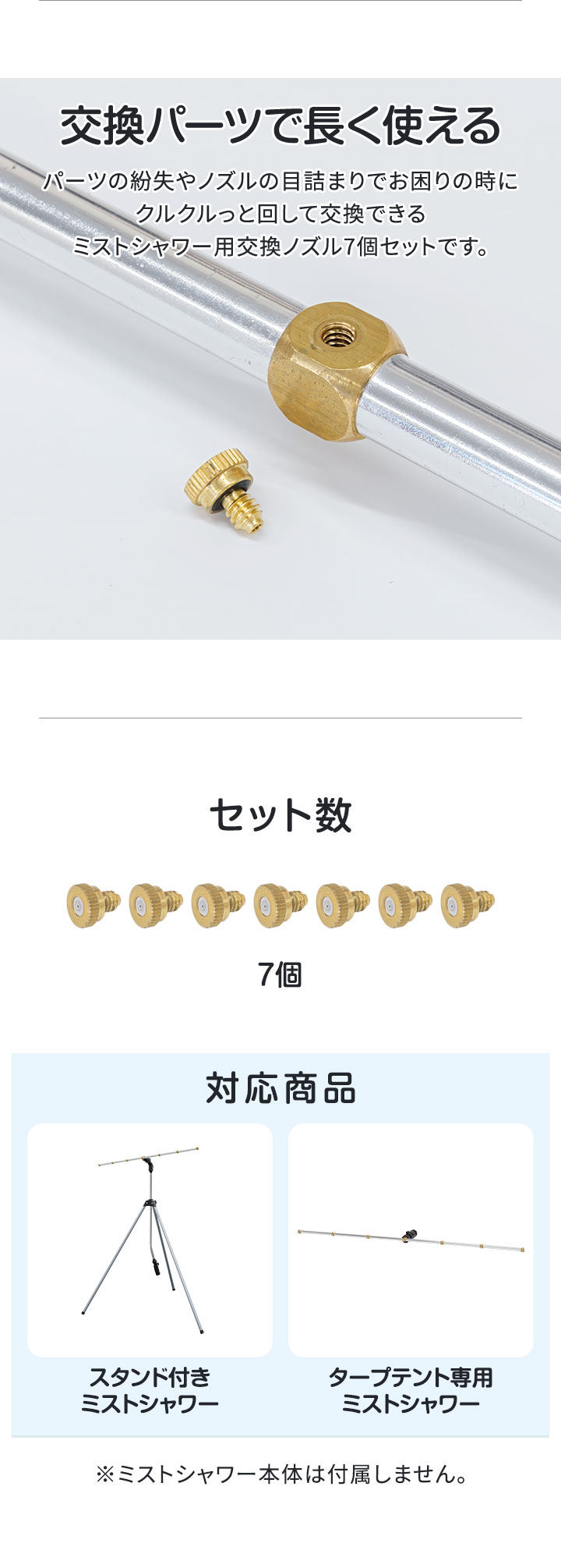 FIELDOOR ミストシャワー用交換ノズル 7個セット 交換 補修パーツ オプション ミストノズル [対応モデル]スタンド付きミストシャワー/タープテント専用ミストシャワー対応 ※ノズルのみ、ミストシャワー本体別売 送料無料 メール便