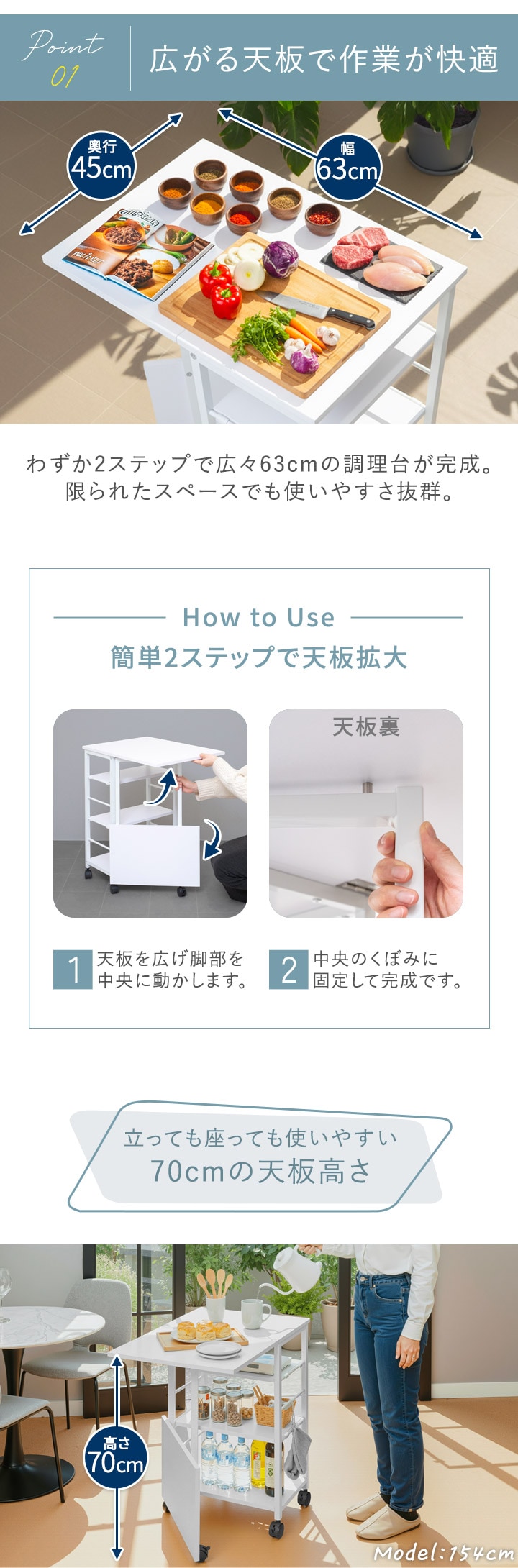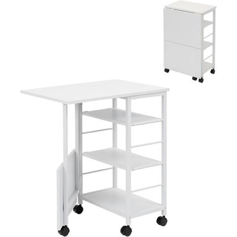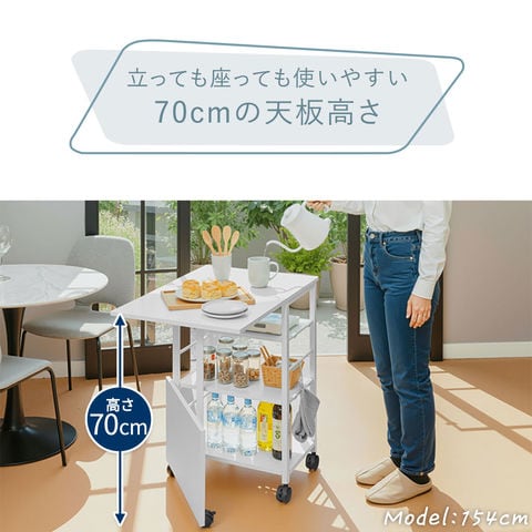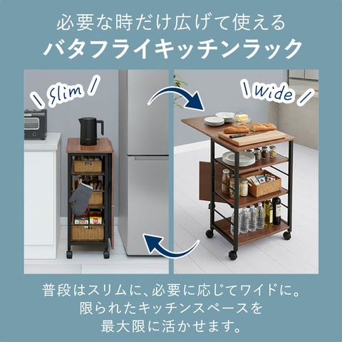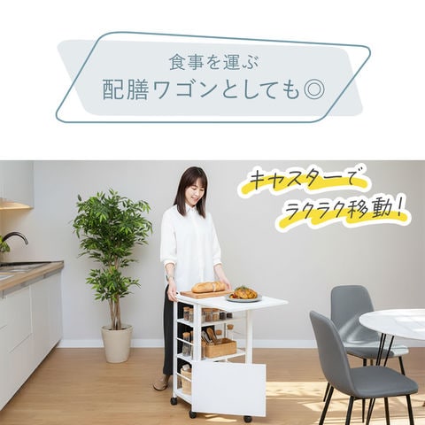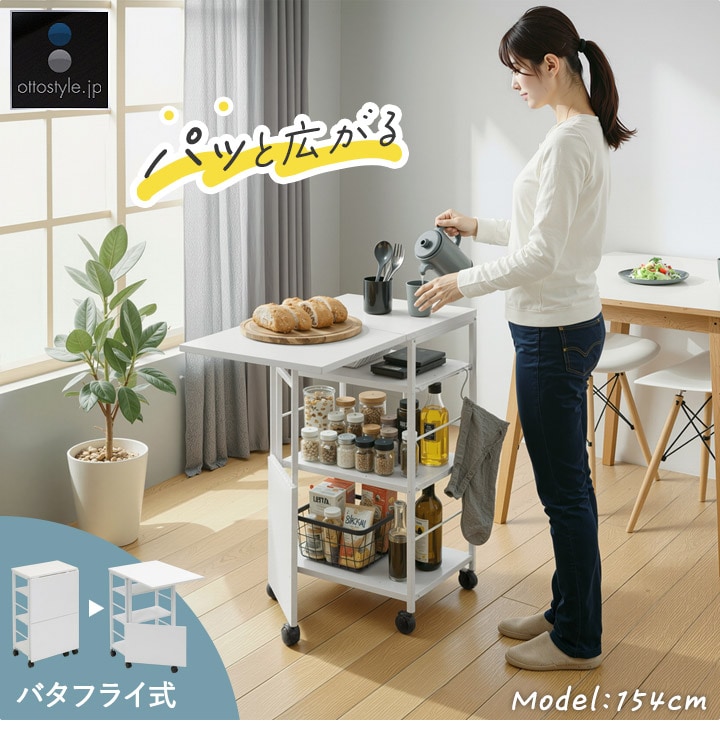 キッチンワゴン キャスター付き (ホワイト) 折りたたみ バタフライ テーブル スリム 幅31.5cm 作業台 調理台 天板付き キッチン収納 キッチンラック 可動棚 隙間収納 目隠し 高さ70cm デスクワゴン 机 サイドワゴン 北欧 シンプル おしゃれ 1台2役 送料無料