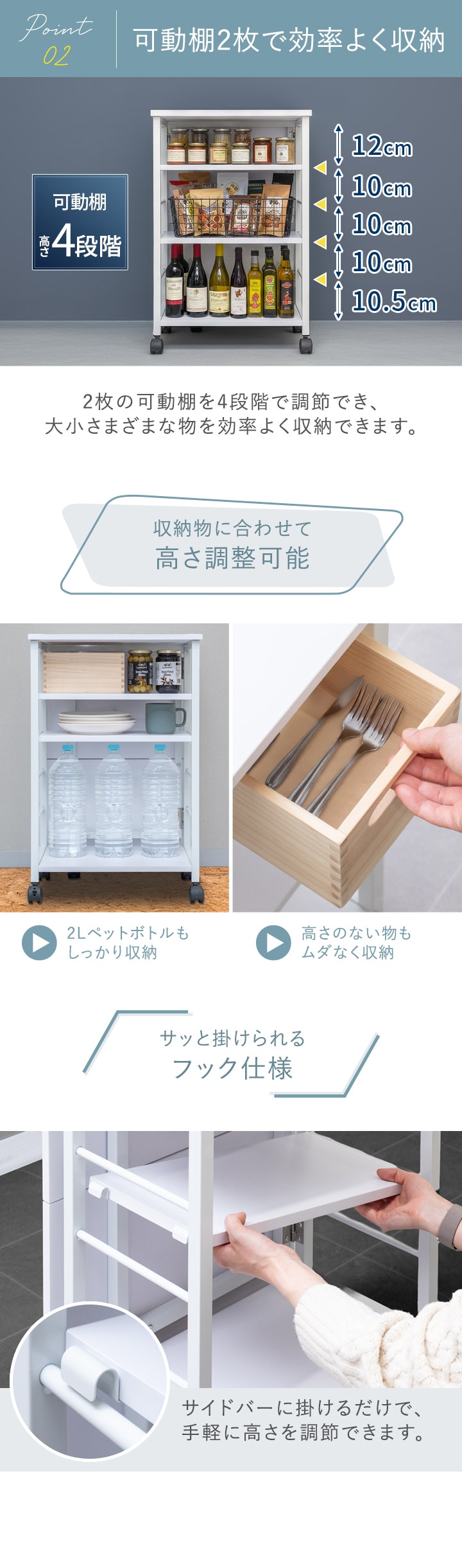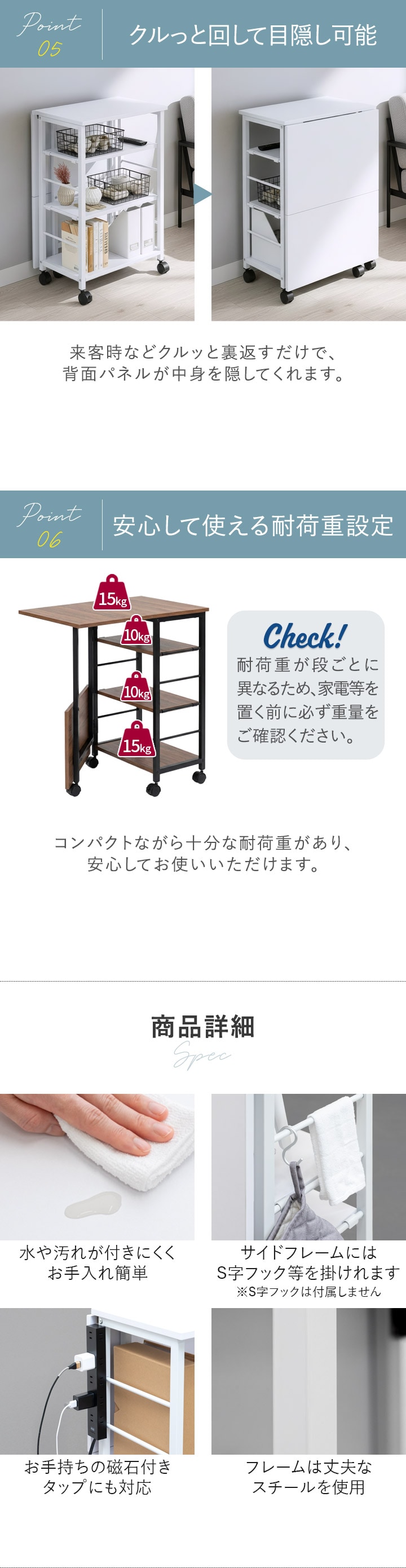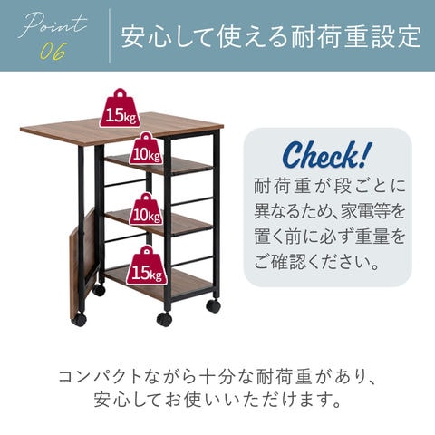 | 耐荷重: 最上段:15kg 可動棚:各10kg 最下段:15kg |