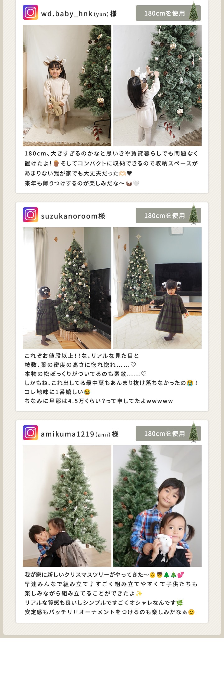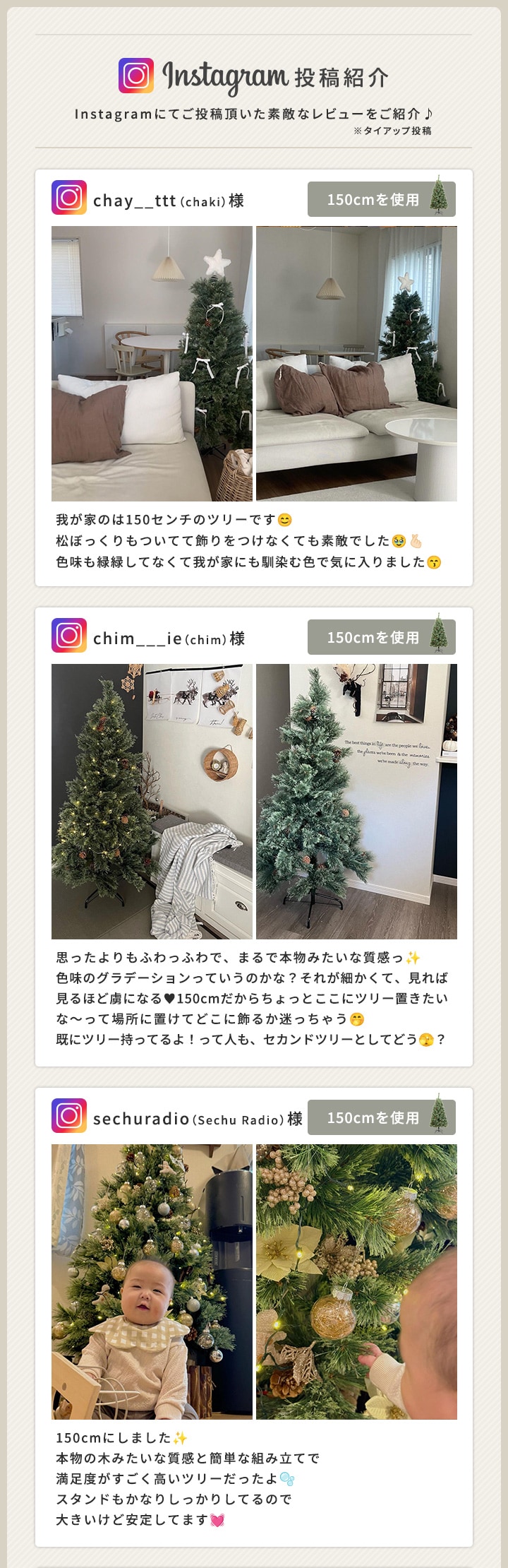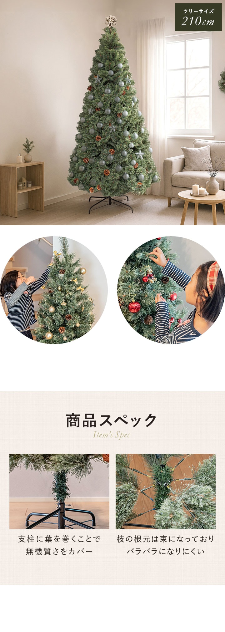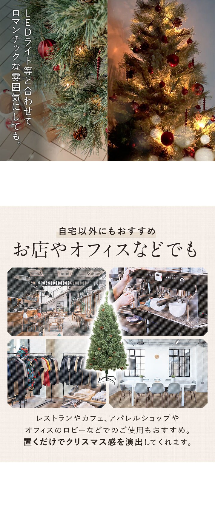| 特記事項: こちらは高さ180cmタイプの販売ページです。 ※本品は松ぼっくりの装飾が付いたヌードツリーです。電飾やオーナメントなどは付属いたしませんので、予めご注意の上ご購入をお願い致します。 ※葉は針葉のため、枝を広げる際は大人の方が長袖・軍手等着用の上、安定感のある場所で行ってください。 |