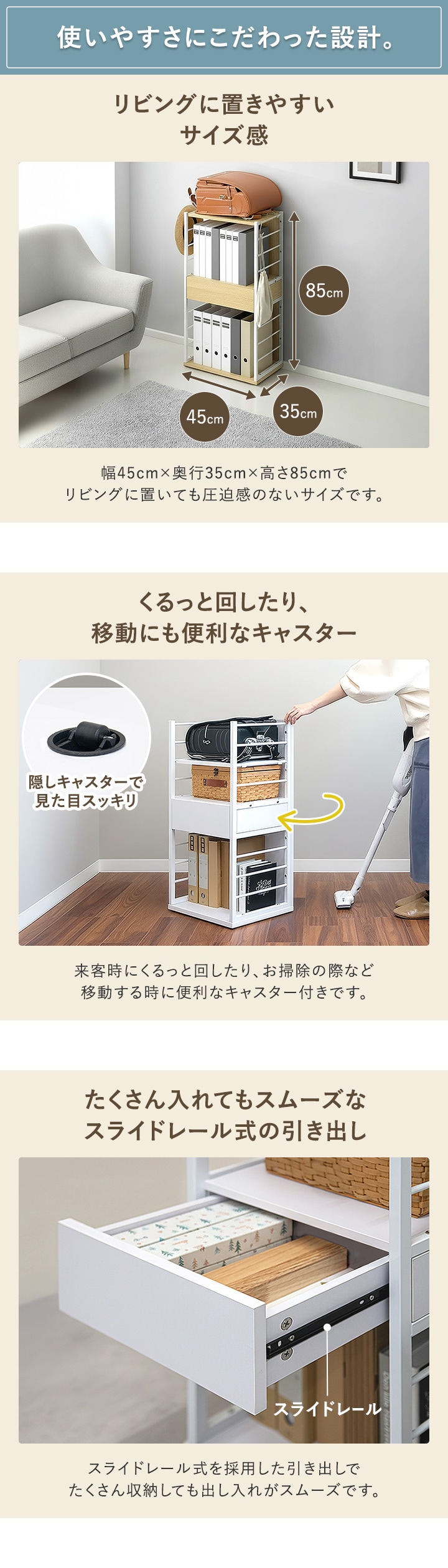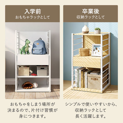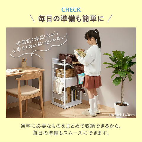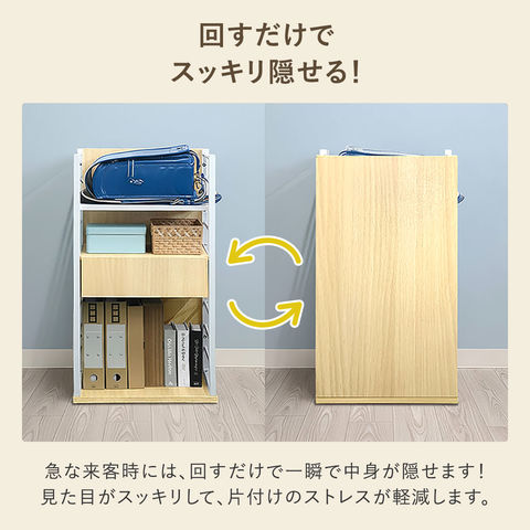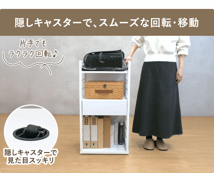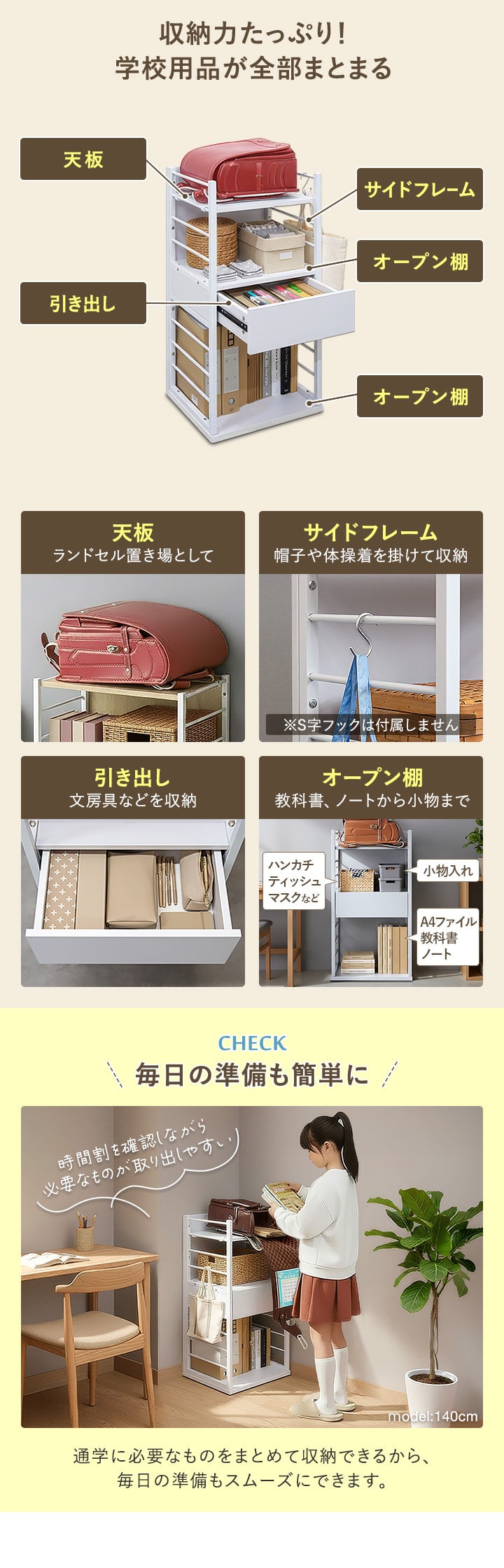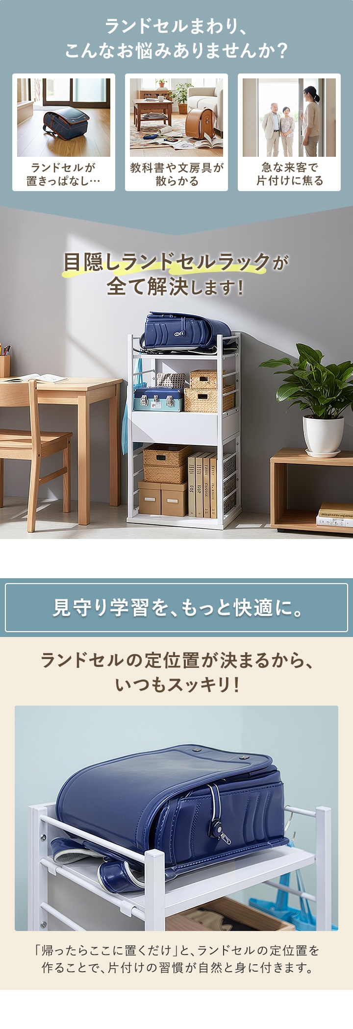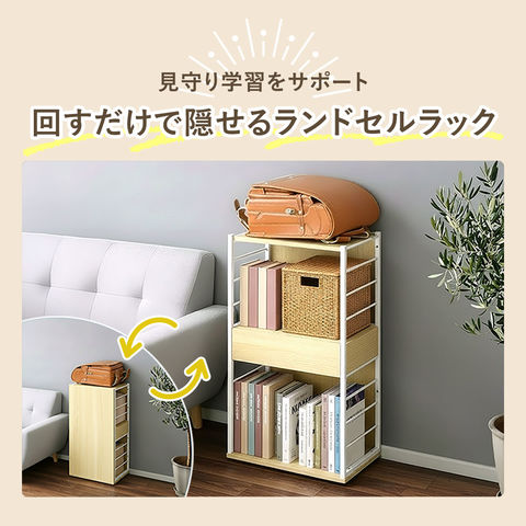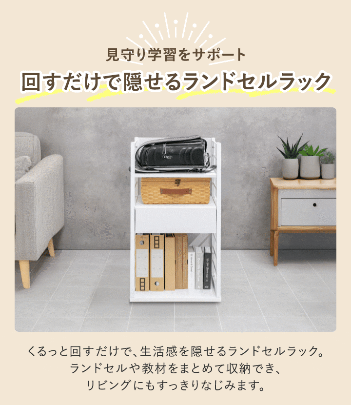 RiZKiZ ランドセルラック キャスター付き (ホワイト) 目隠しワゴン 幅45cm×高さ85cm ランドセル収納 スリム 可動棚 引出し付き お片付け 本棚 子供部屋 入学準備 インテリア 収納 ラック 子供用 収納棚 教科書 おもちゃ 小学校 おしゃれ 木目 北欧 送料無料
