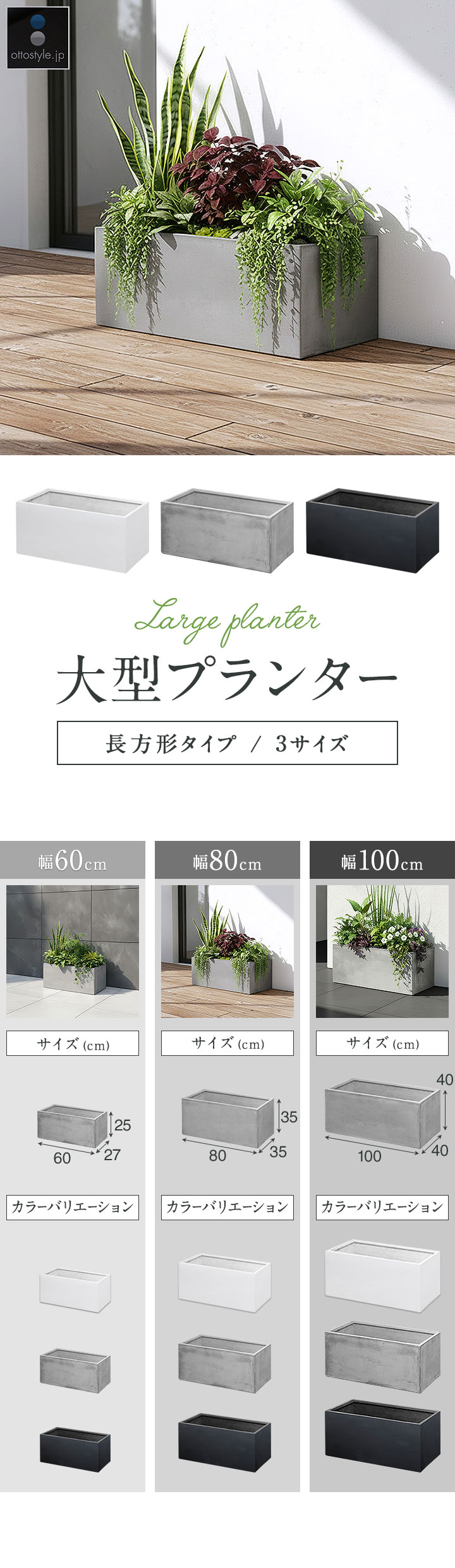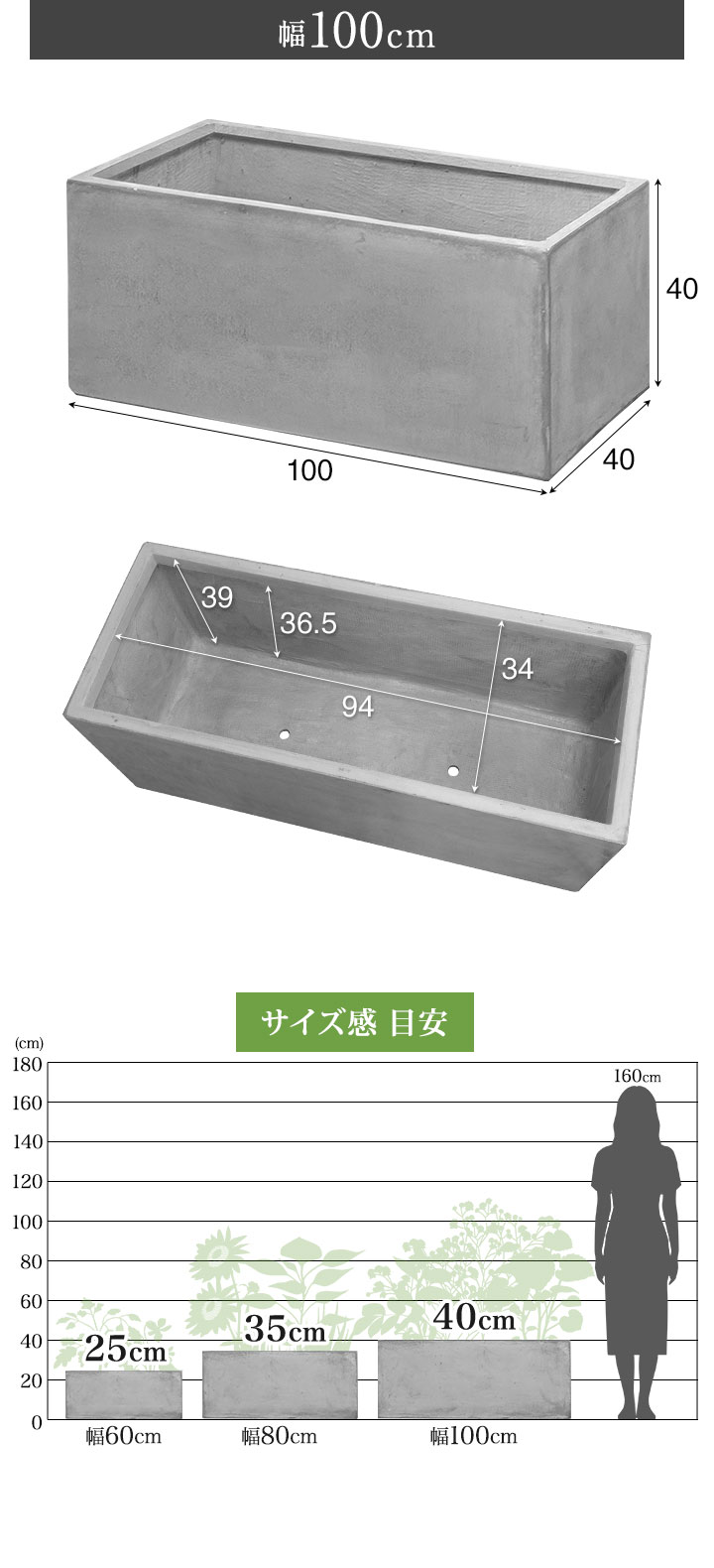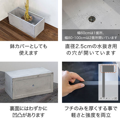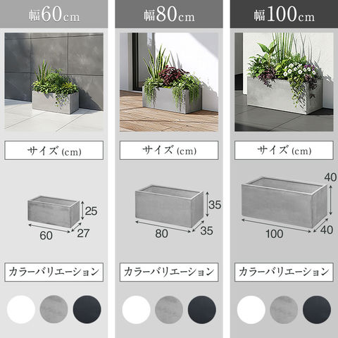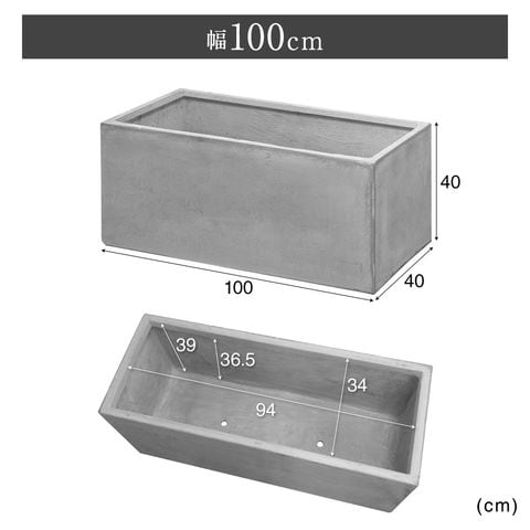 プランター 大型 長方形 (幅100x40x40cm/グレー) 角 四角 プランターボックス 深型 屋外 おしゃれ コンクリート調 鉢植え 植木鉢 鉢カバー 軽量 目安 5号~10号 ファイバークレイ 菜園 園芸 ベランダ ガーデニング 家庭菜園 花 観葉植物 送料無料
