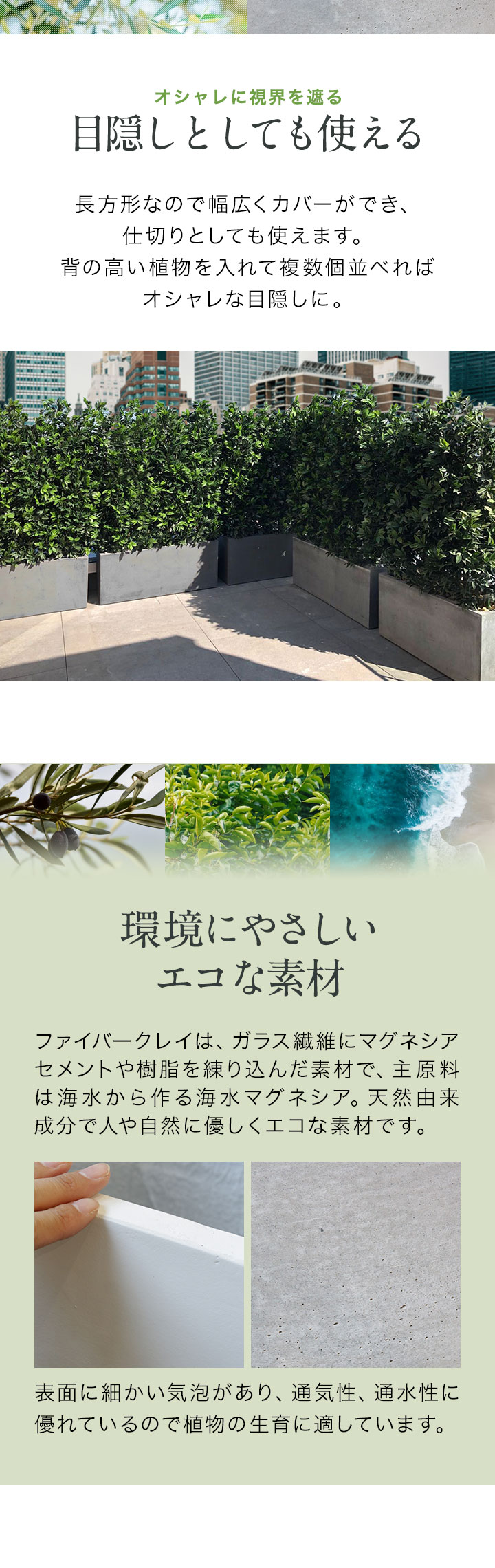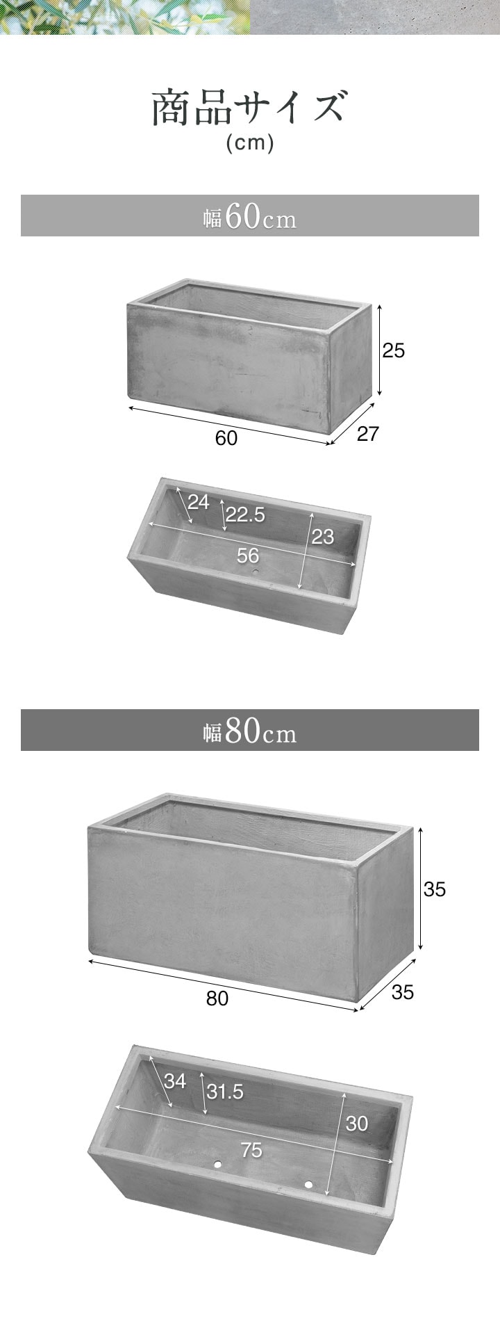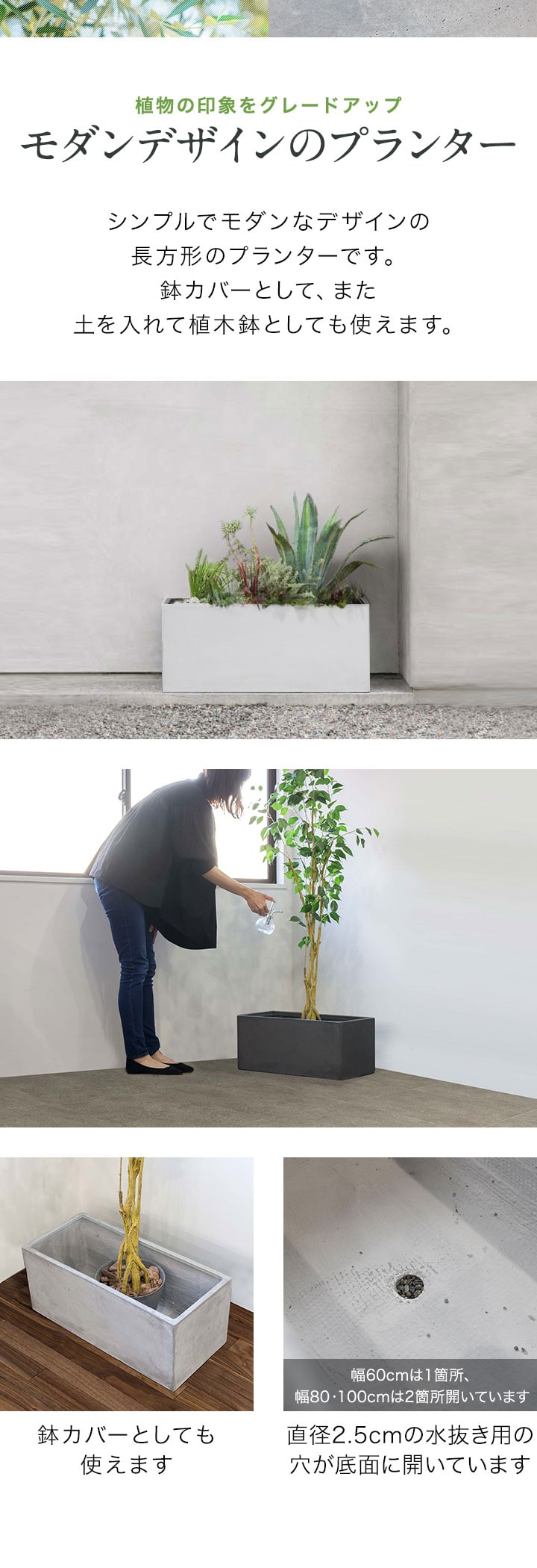 プランター 大型 長方形 (幅100x40x40cm/グレー) 角 四角 プランターボックス 深型 屋外 おしゃれ コンクリート調 鉢植え 植木鉢 鉢カバー 軽量 目安 5号~10号 ファイバークレイ 菜園 園芸 ベランダ ガーデニング 家庭菜園 花 観葉植物 送料無料