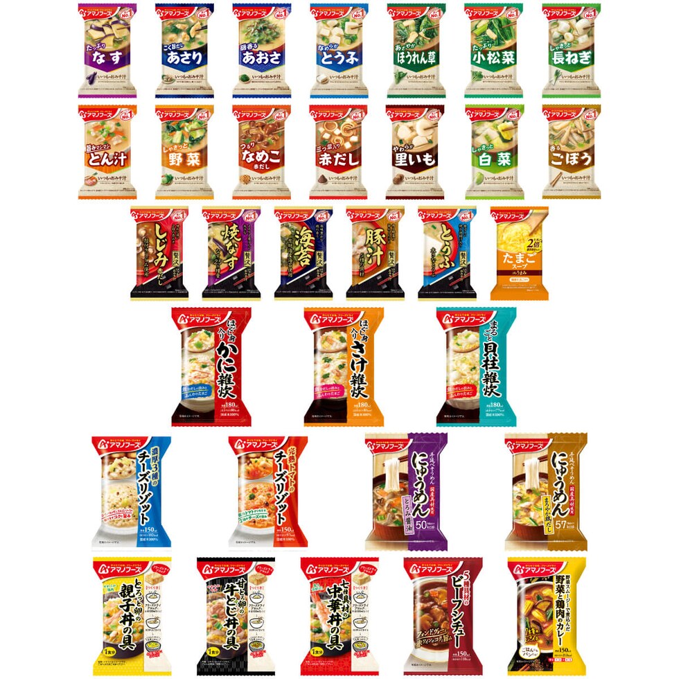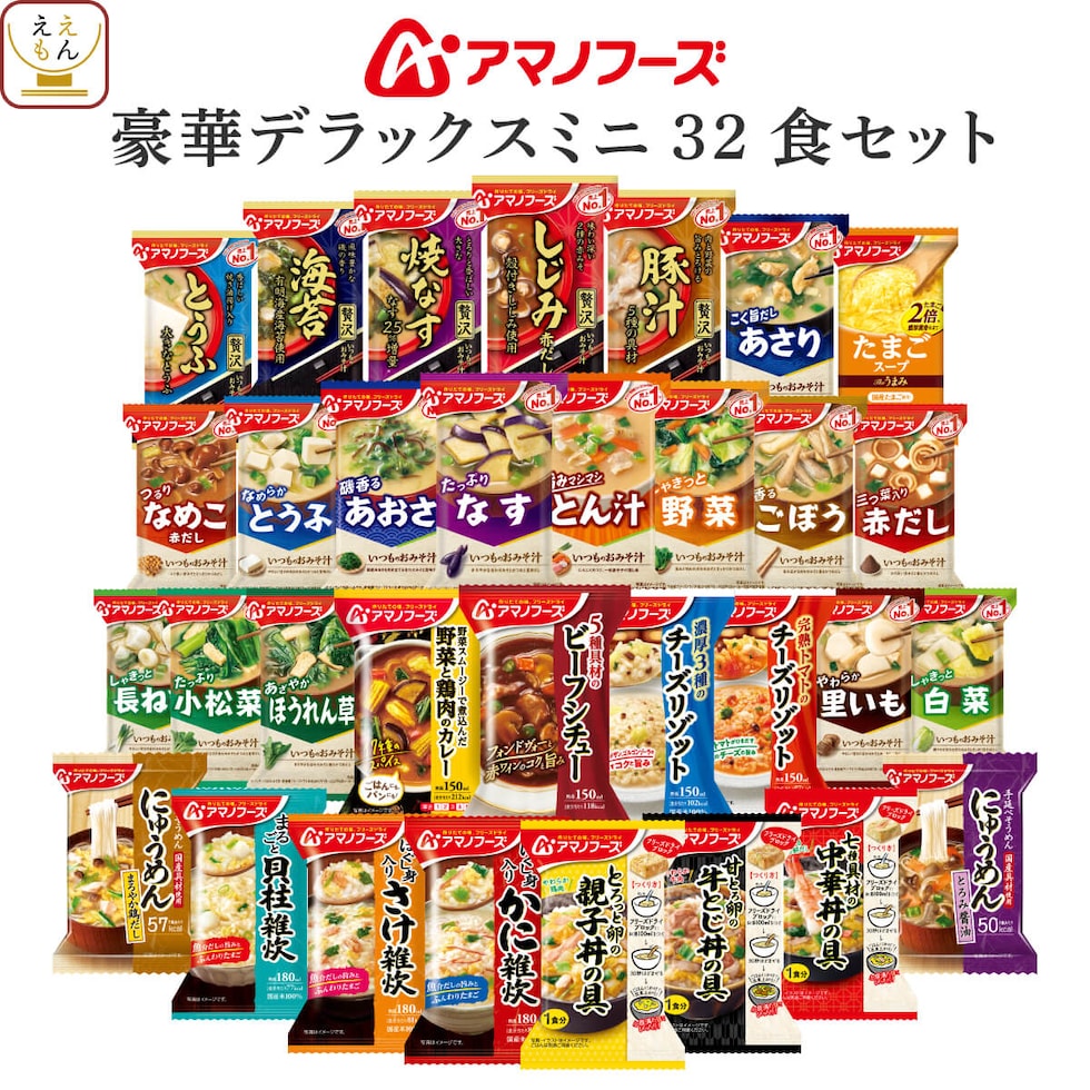アマノフーズ フリーズドライ デラックスミニ 32種32食 詰め合わせ セット 【 送料無料 】 インスタント 味噌汁 スープ 惣菜 食品 一人暮らし 仕送り 大容量 まとめ買い 防災 備蓄 食料 常温保存 非常食 保存食 2026 バレンタイン ホワイトデー
