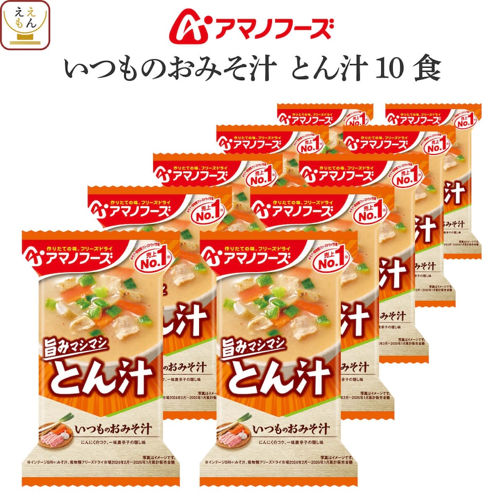 アマノフーズ フリーズドライ食品 味噌汁 いつものおみそ汁 豚汁 が 10食 入りの 詰め合わせ セット いつも 美味しい 毎日 食べても飽きのこない お味噌汁 です。 朝ご飯 や ランチ の みそ汁 として お弁当 や キャンプ などにも 気軽に持ち運びができる インスタント味噌汁 フリーズドライ 食品 は、 味 香り 栄養 はそのままに お湯を注ぐだけ で いつでも 簡単 手軽 に 出来立ての 美味しさ が頂けます。