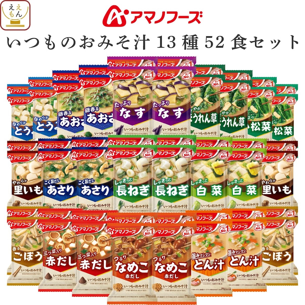アマノフーズ フリーズドライ 味噌汁 いつものおみそ汁 13種52食 詰め合わせ セット 【 送料無料 】 インスタント食品 即席みそ汁 常温保存 お味噌汁 ご飯のお供 一人暮らし 高齢者 仕送り 備蓄 防災 保存食 非常食 バレンタイン 2026 内祝い ギフト