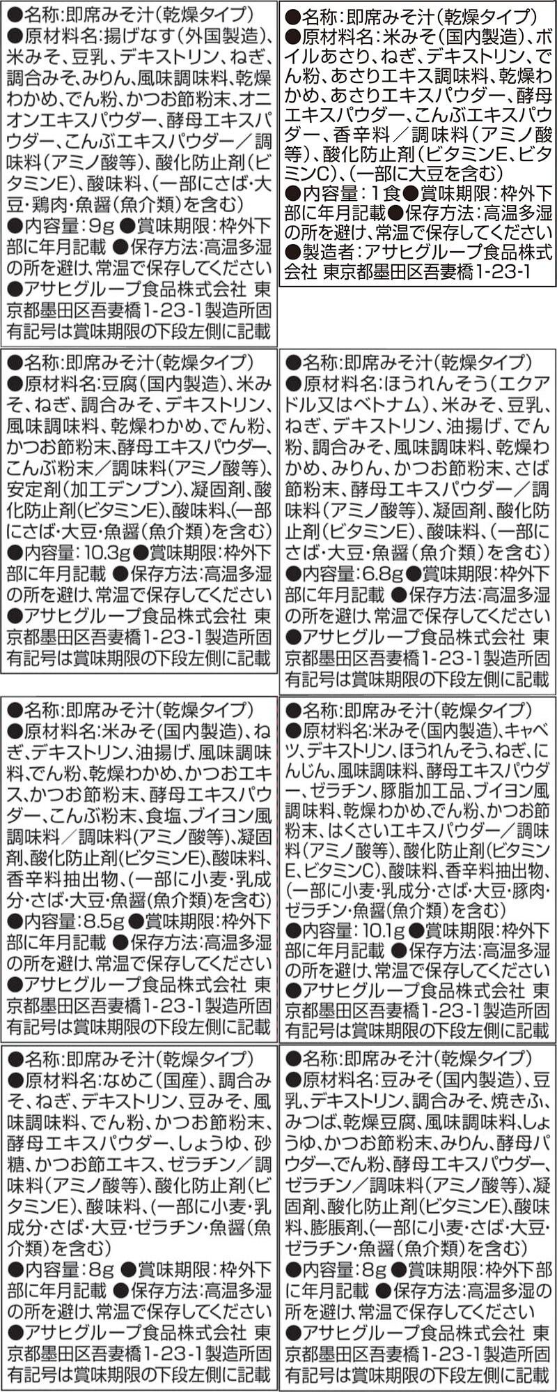 ■ 減塩 いつものおみそ汁 減塩なす 9g 減塩あさり 7.5g 減塩とうふ 10.3g 各4食 |