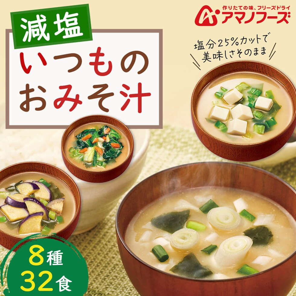 アマノフーズ フリーズドライ 味噌汁 減塩 いつものおみそ汁 8種32食 詰め合わせ セット 【 送料無料 】 インスタント食品 即席みそ汁 常温保存 減塩味噌汁 ご飯のお供 一人暮らし 仕送り 備蓄 防災 保存食 非常食 ホワイトデー 2026 新生活 ギフト