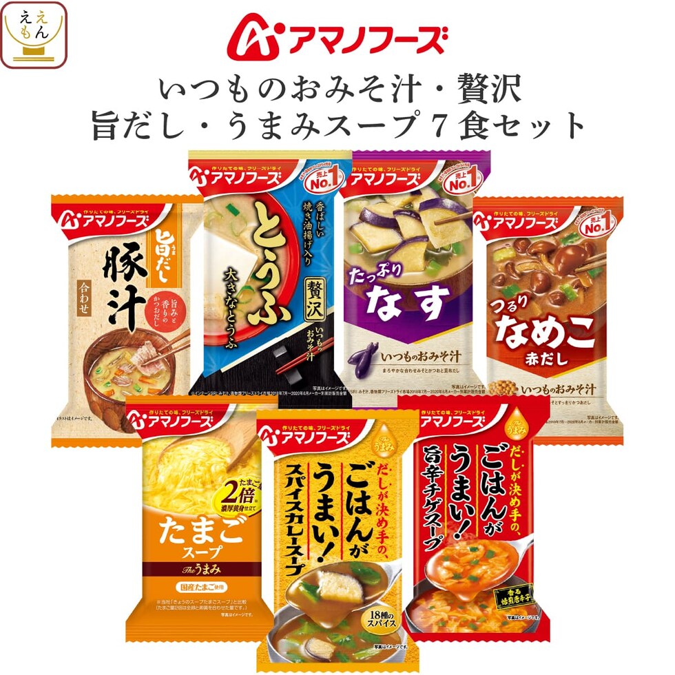 アマノフーズ フリーズドライ 味噌汁 うまみ スープ 7種7食 詰め合わせ セット 【 メール便 送料無料 】 即席みそ汁 インスタントスープ ご飯のお供 ポイント消化 お試し 一人暮らし 仕送り 防災 保存食 非常食 備蓄 ホワイトデー 2026 新生活 お返し