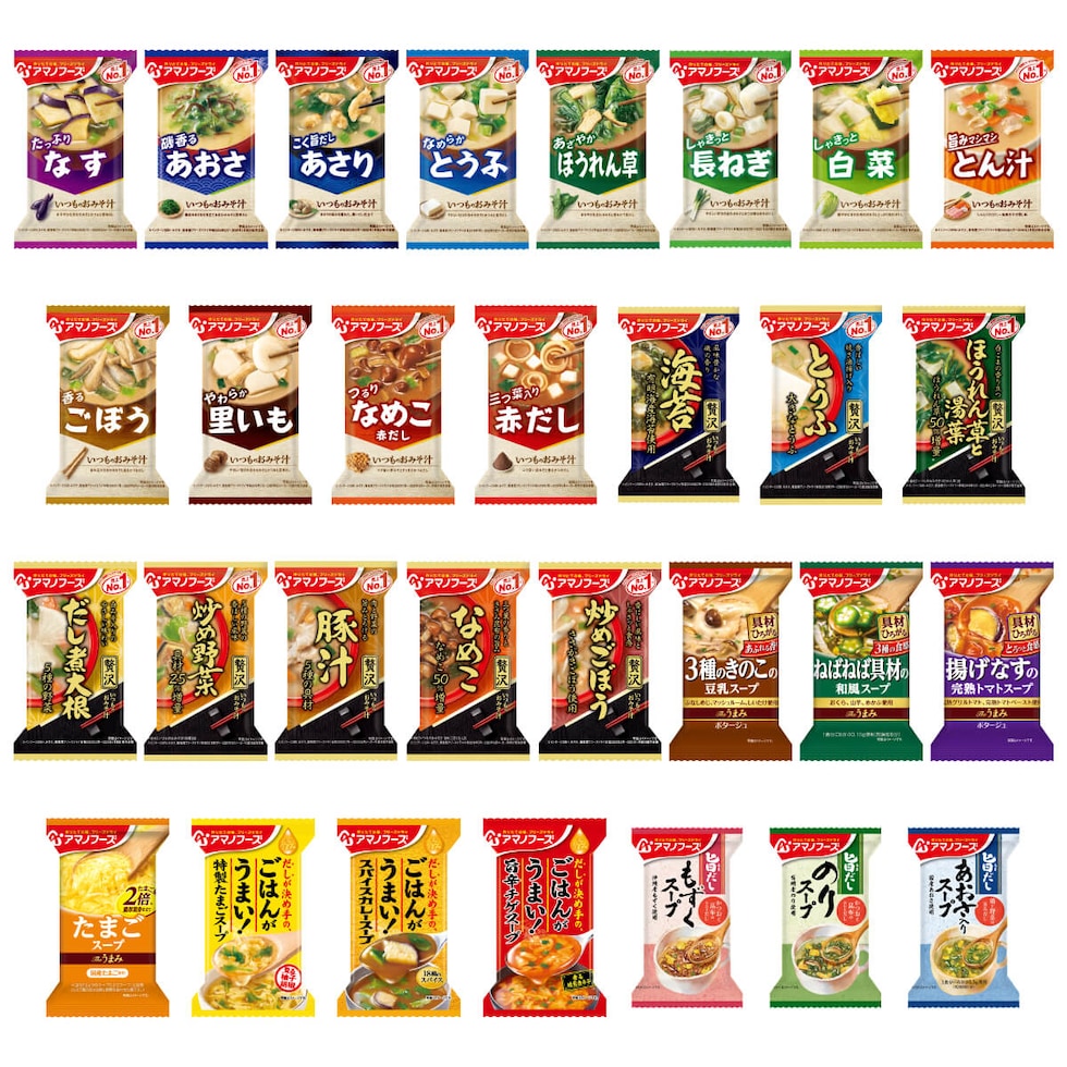 アマノフーズ フリーズドライ 味噌汁 スープ 味わい 30種30食 詰め合わせ セット 【 送料無料 】 インスタント 即席味噌汁 即席スープ ご飯のお供 即席 和風 洋風 惣菜 食品 常温 一人暮らし 仕送り 備蓄 非常食 バレンタイン 2026 内祝い ギフト