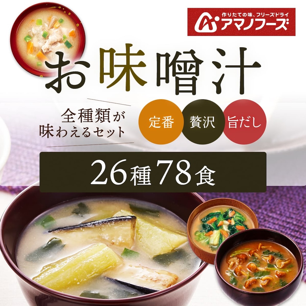 アマノフーズ フリーズドライ 味噌汁 26種78食 詰め合わせ セット 【 送料無料 】 インスタント味噌汁 即席味噌汁 いつものおみそ汁 お味噌汁 みそ汁 味噌汁 仕送り 食べ物 常温保存 食品 備蓄 非常食 保存食 防災 ホワイトデー 2026 新生活 お返し