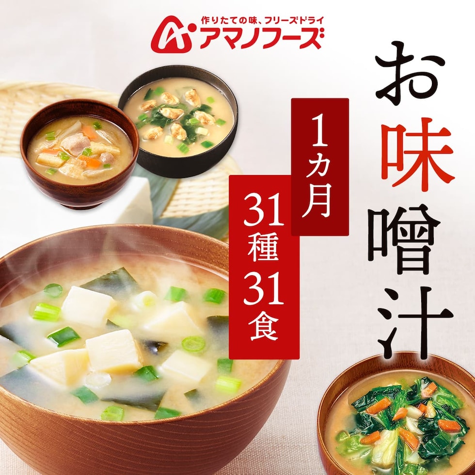 アマノフーズ フリーズドライ 減塩 入り 味噌汁 1ヶ月 31種31食 詰め合わせ セット 【 送料無料 】 即席みそ汁 インスタント食品 常温保存 減塩味噌汁 おみそ汁 お味噌汁 みそ汁 味噌汁 仕送り 備蓄 防災 非常食 ホワイトデー 2026 新生活 ギフト